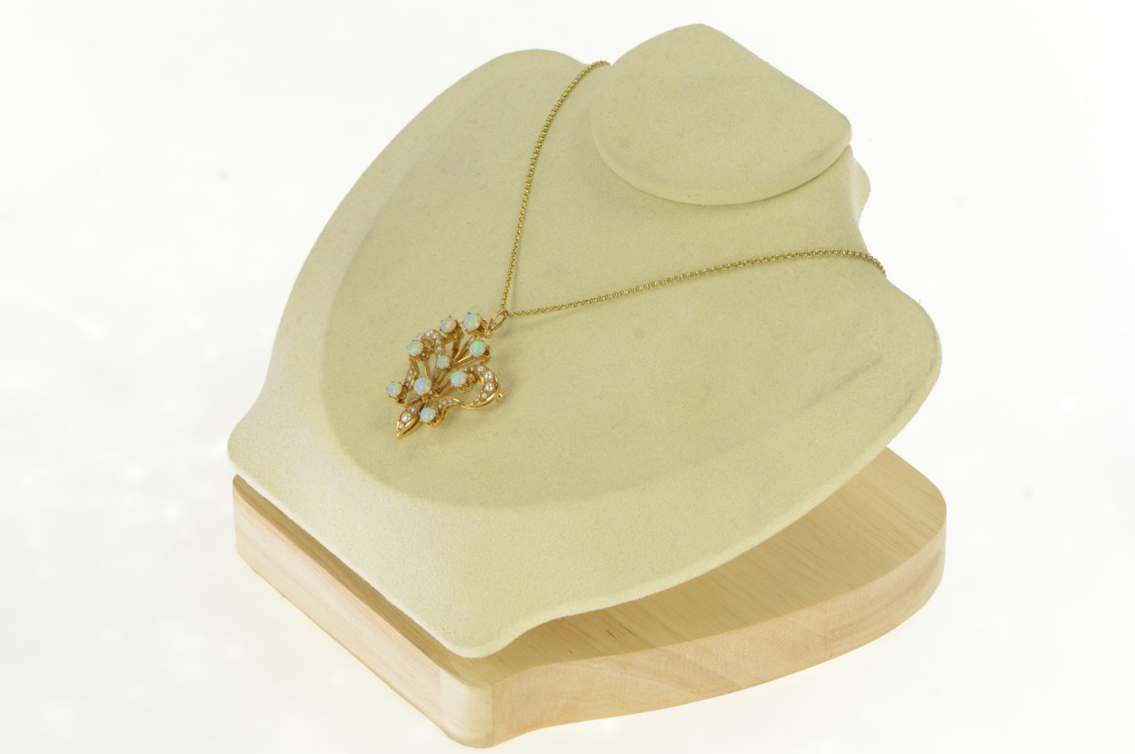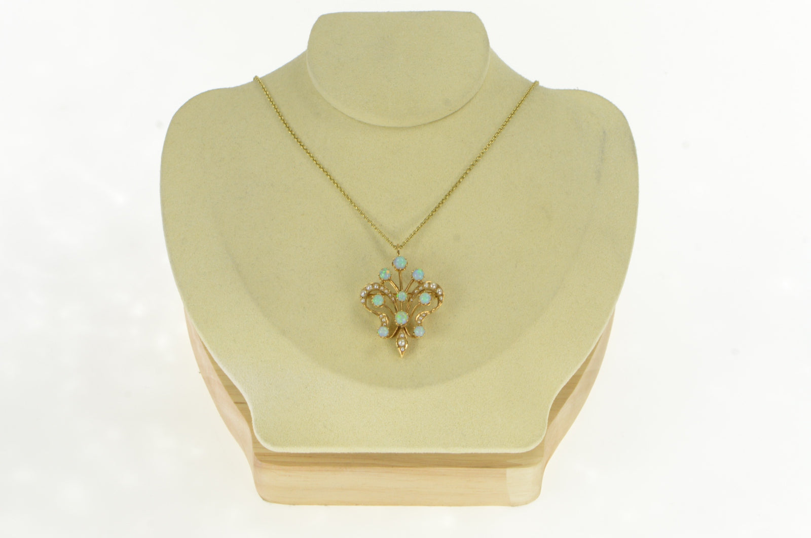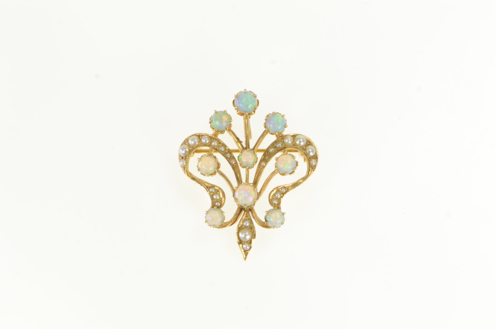 ·Item: 14K Victorian Opal Seed Pearl Fleur De Lis Pendant/Pin Yellow Gold