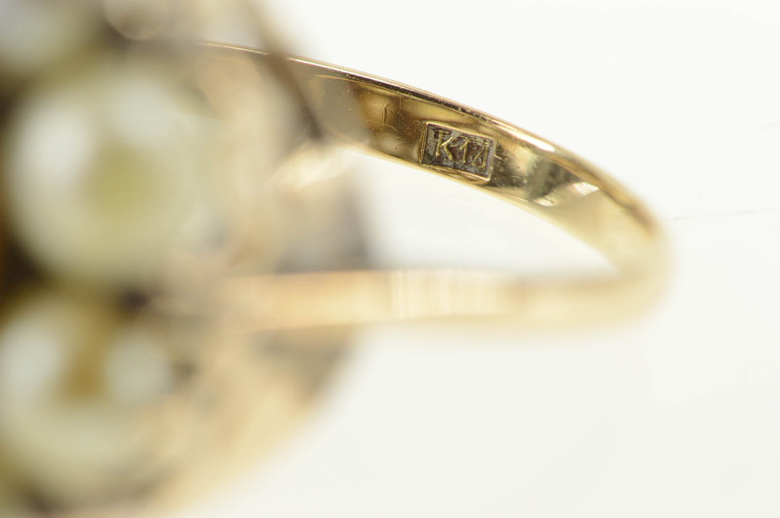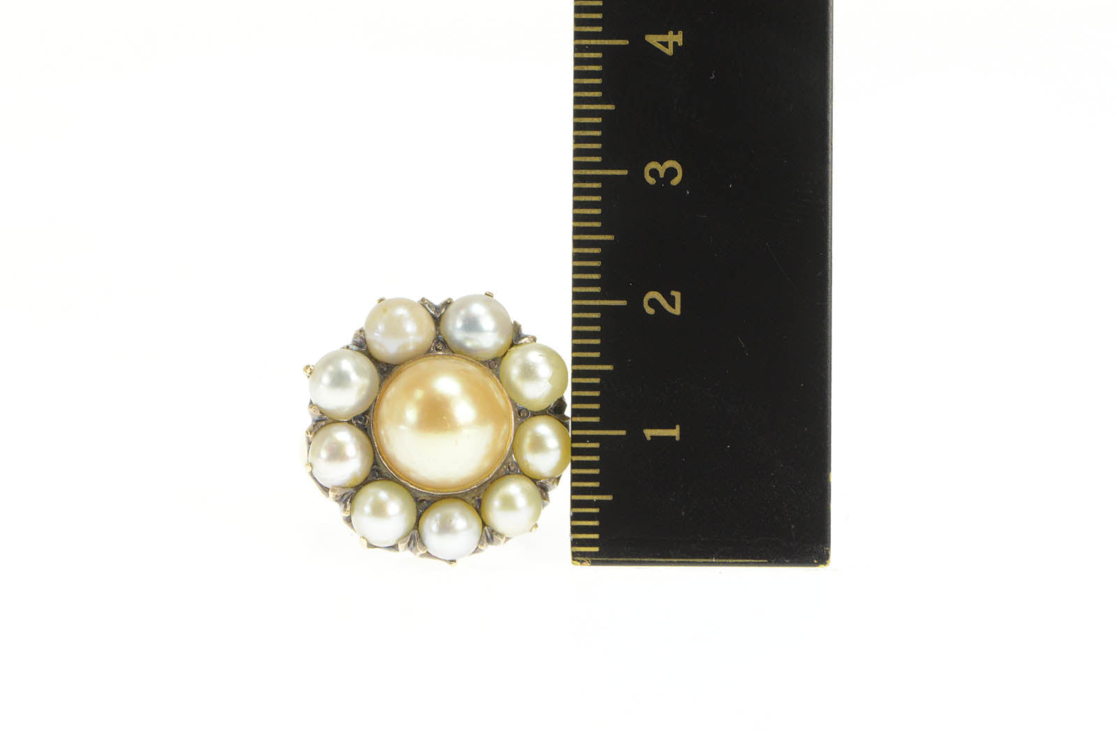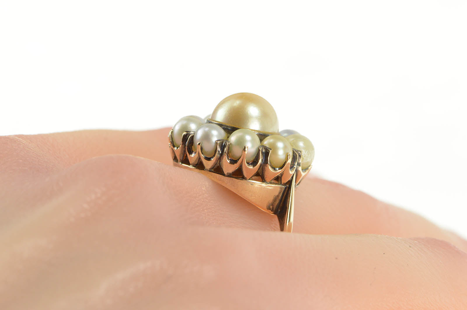 ·Item: 14K Victorian Sim. Pearl Round Cluster Cocktail Ring Size 8.5 Yellow Gold