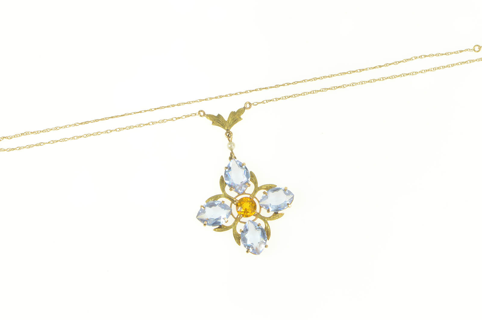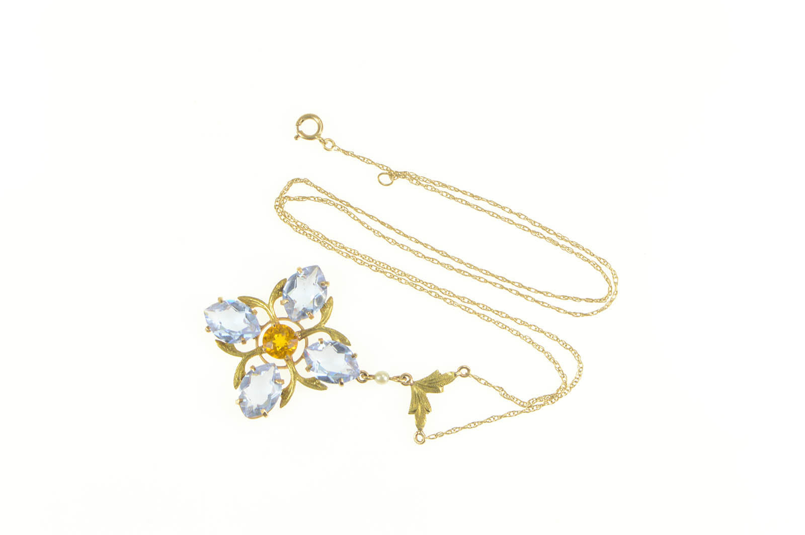 ·Item: 14K Victorian Syn. Sapphire Citrine Flower Necklace 16.25" Yellow Gold
