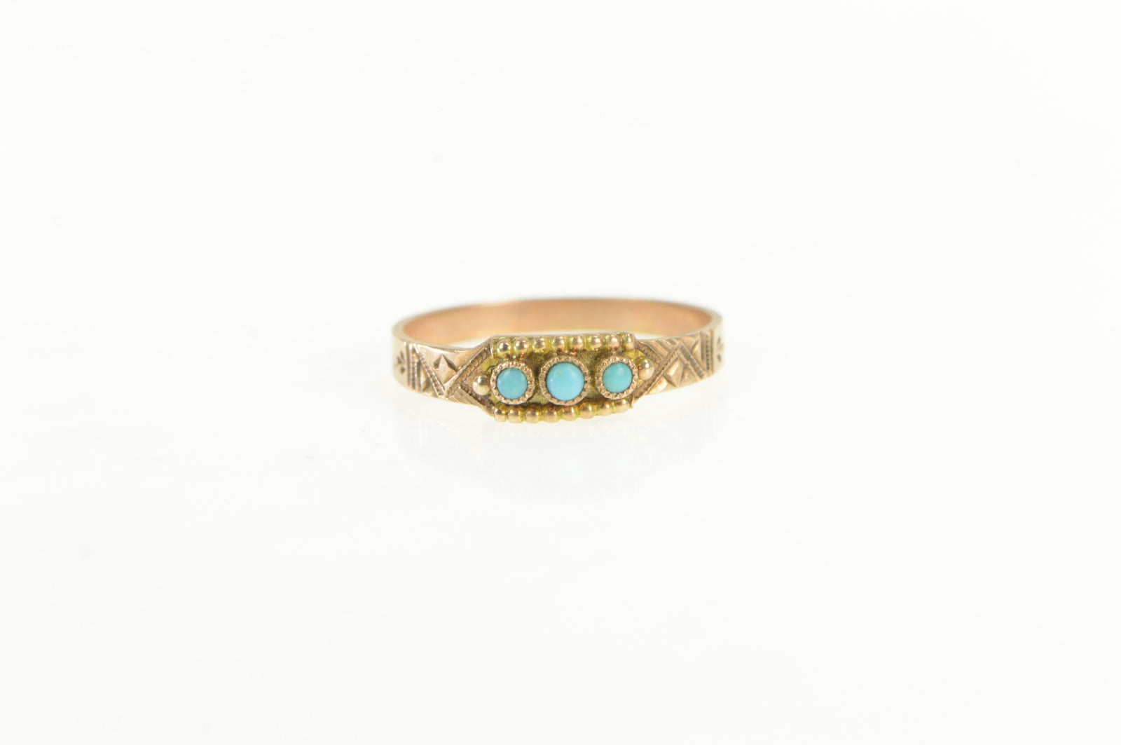 ·Item: 14K Victorian Turquoise Ornate Baby Child's Ring Size 2 Yellow Gold