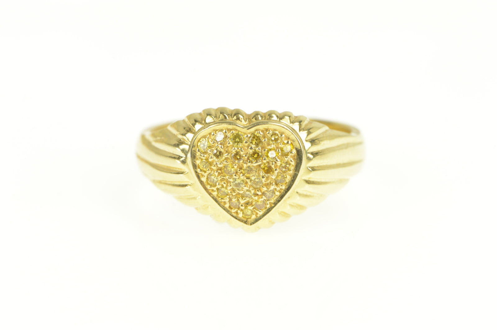 ·Item: 14K Yellow Diamond Pave Heart Love Symbol Ring Size 7 Yellow Gold