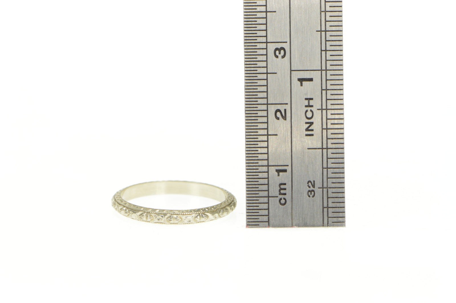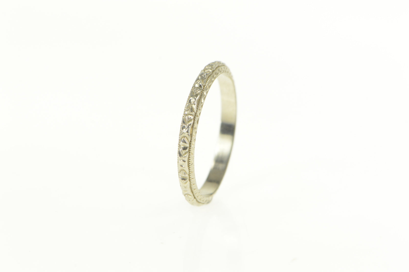 ·Item: 18K 2.5mm Art Deco Ornate Scroll Wedding Band Ring Size 7.5 White Gold