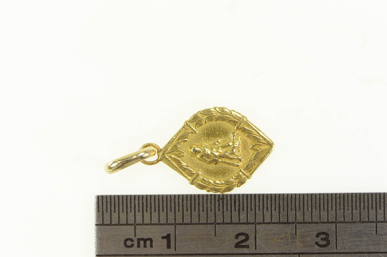 ·Item: 18K Knight with Dogs Ornate Scene Small Charm/Pendant Yellow Gold