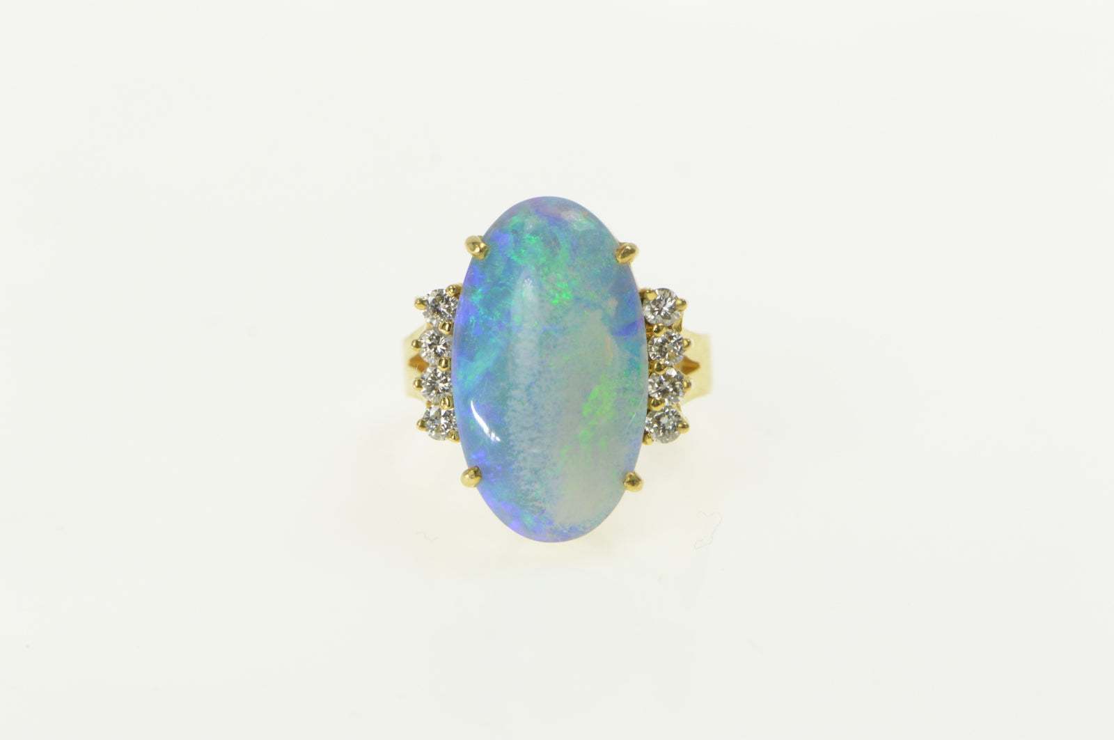 18K Massive Opal VS Diamond Statement Cocktail Ring Yellow Gold