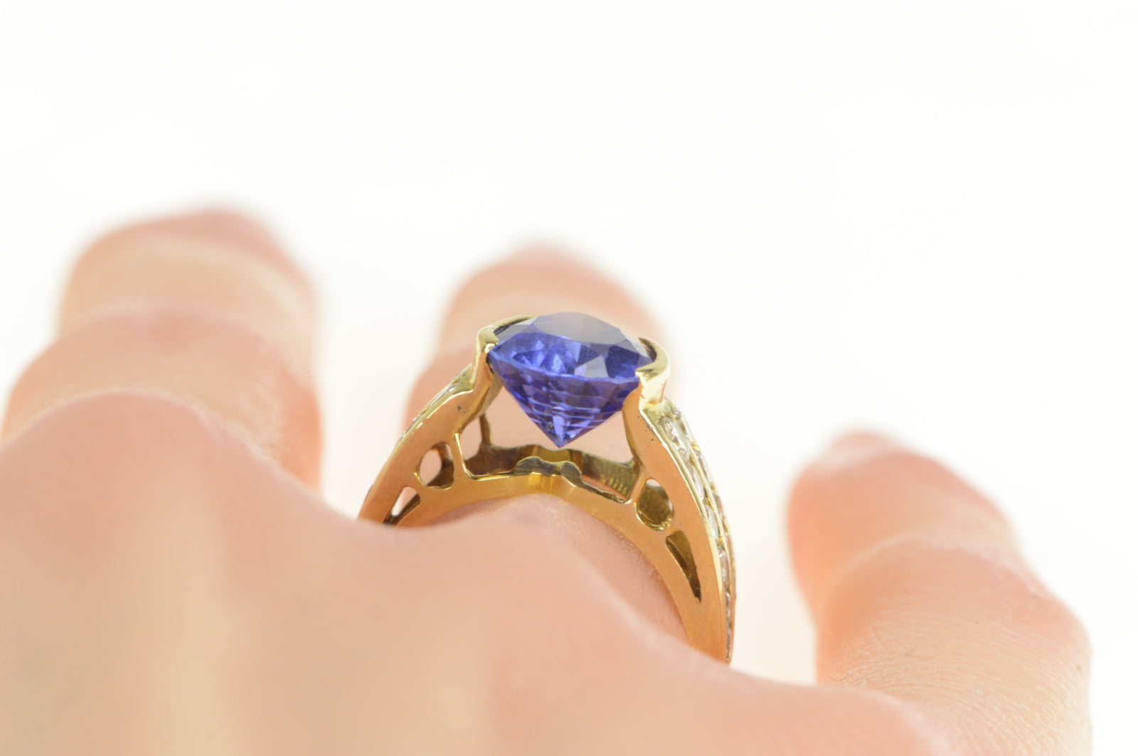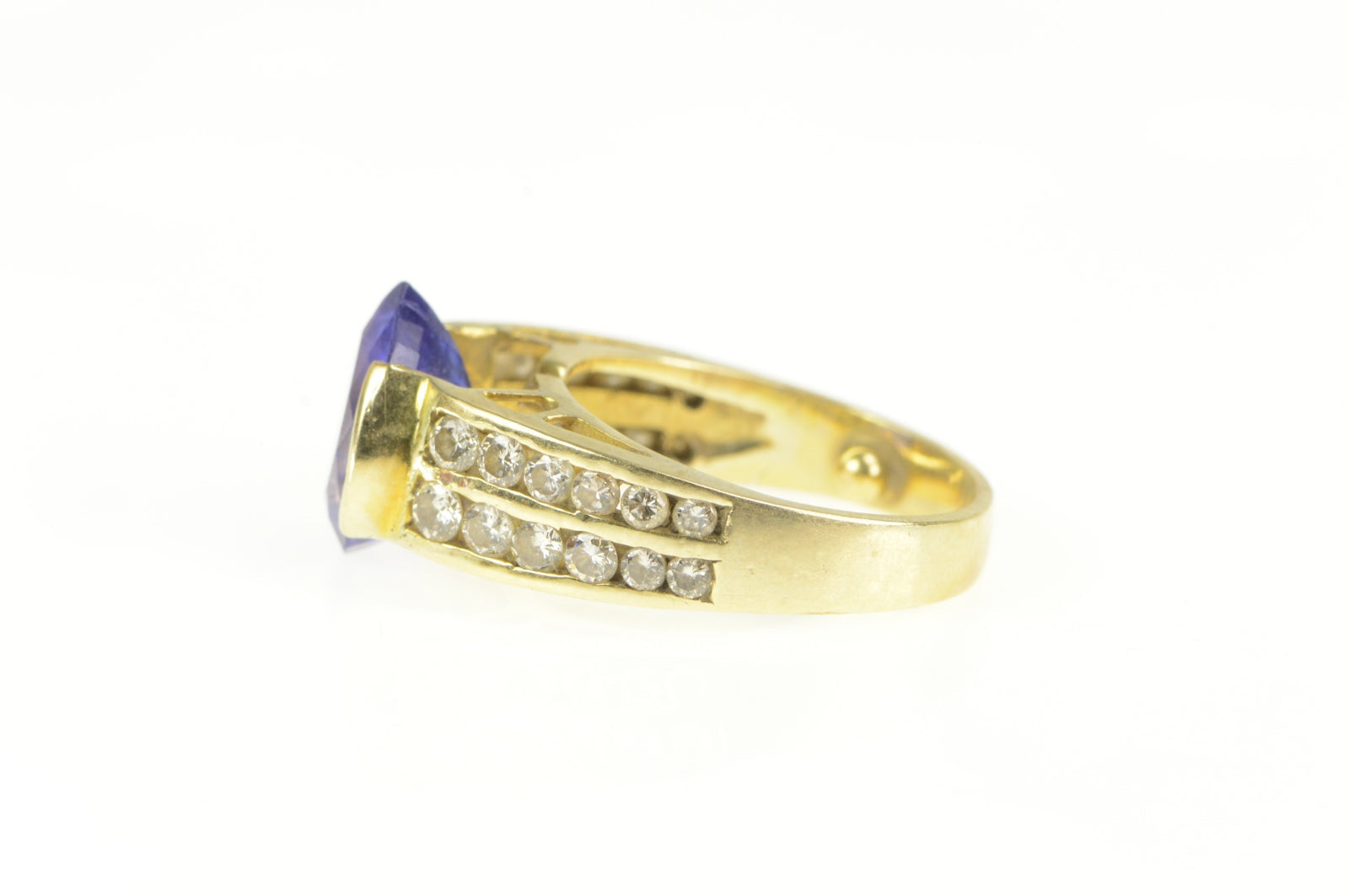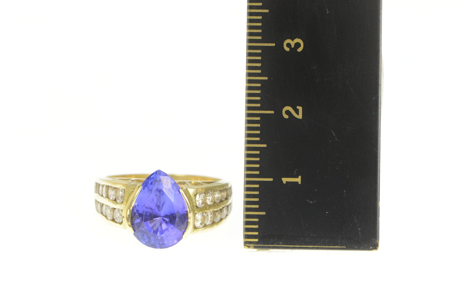 ·Item: 18K Pear Tanzanite Diamond Channel Accent Ring Size 5.25 Yellow Gold