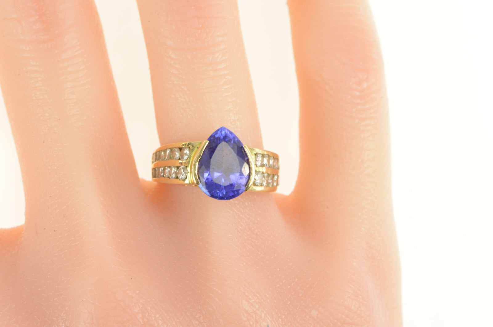 18K Pear Tanzanite Diamond Channel Accent Ring Yellow Gold