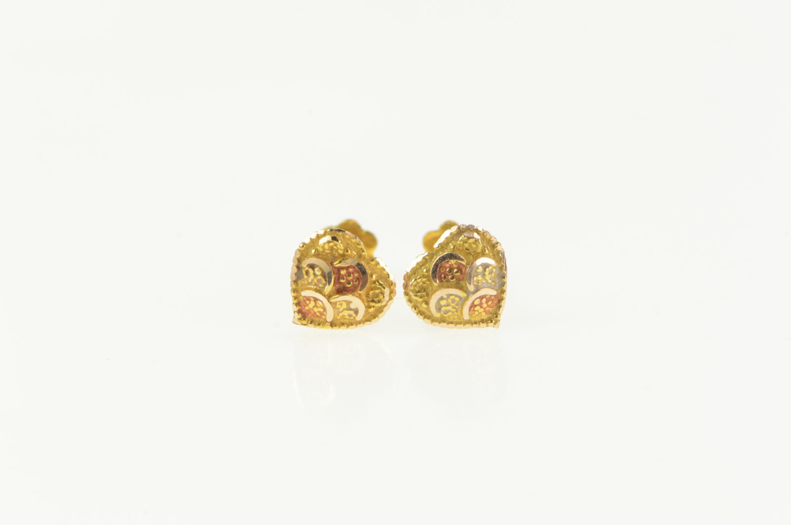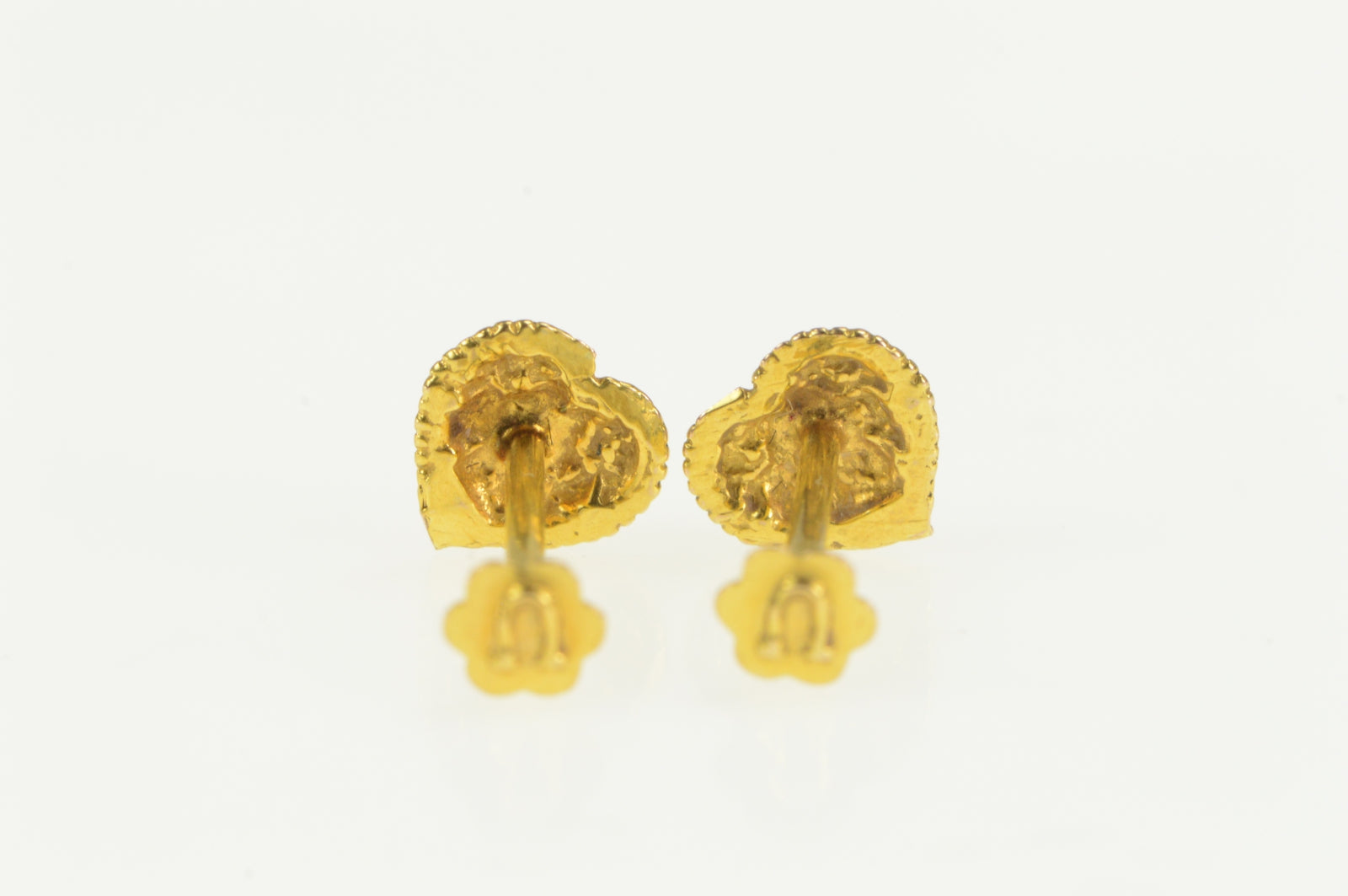 ·Item: 18K Textured Heart Love Symbol Screw Back Stud Earrings Yellow Gold