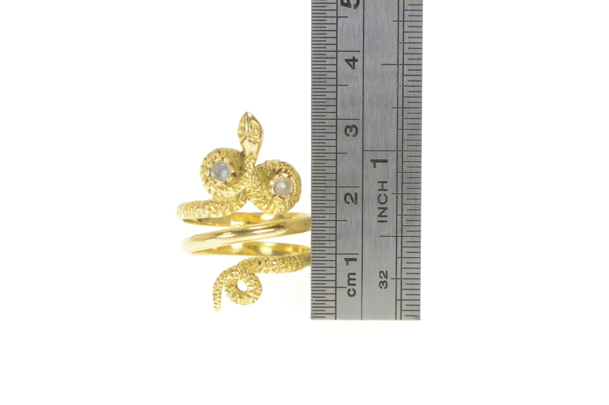 ·Item: 18K Victorian Moonstone Eyed Snake Serpent Ring Size 7.75 Yellow Gold