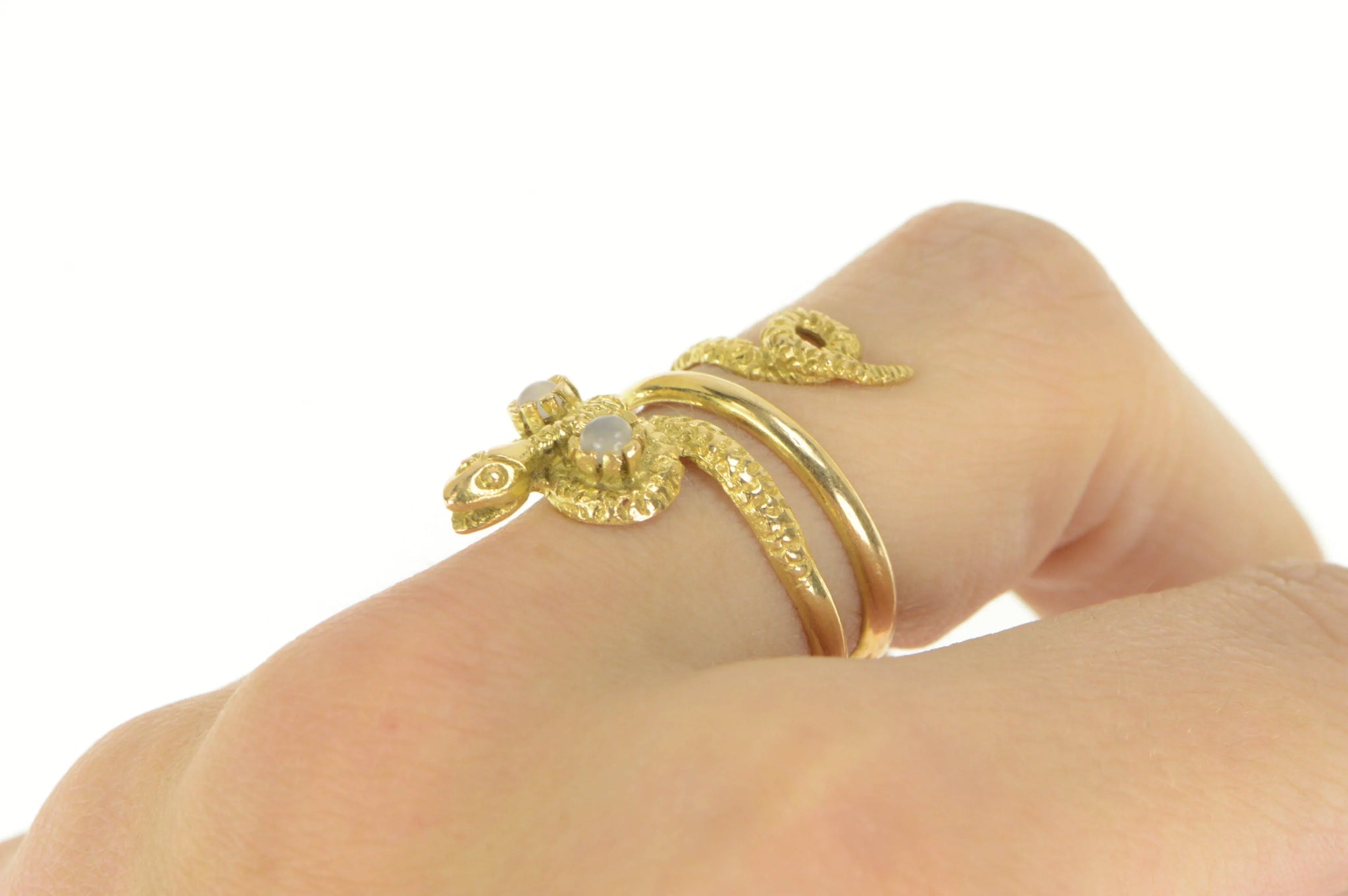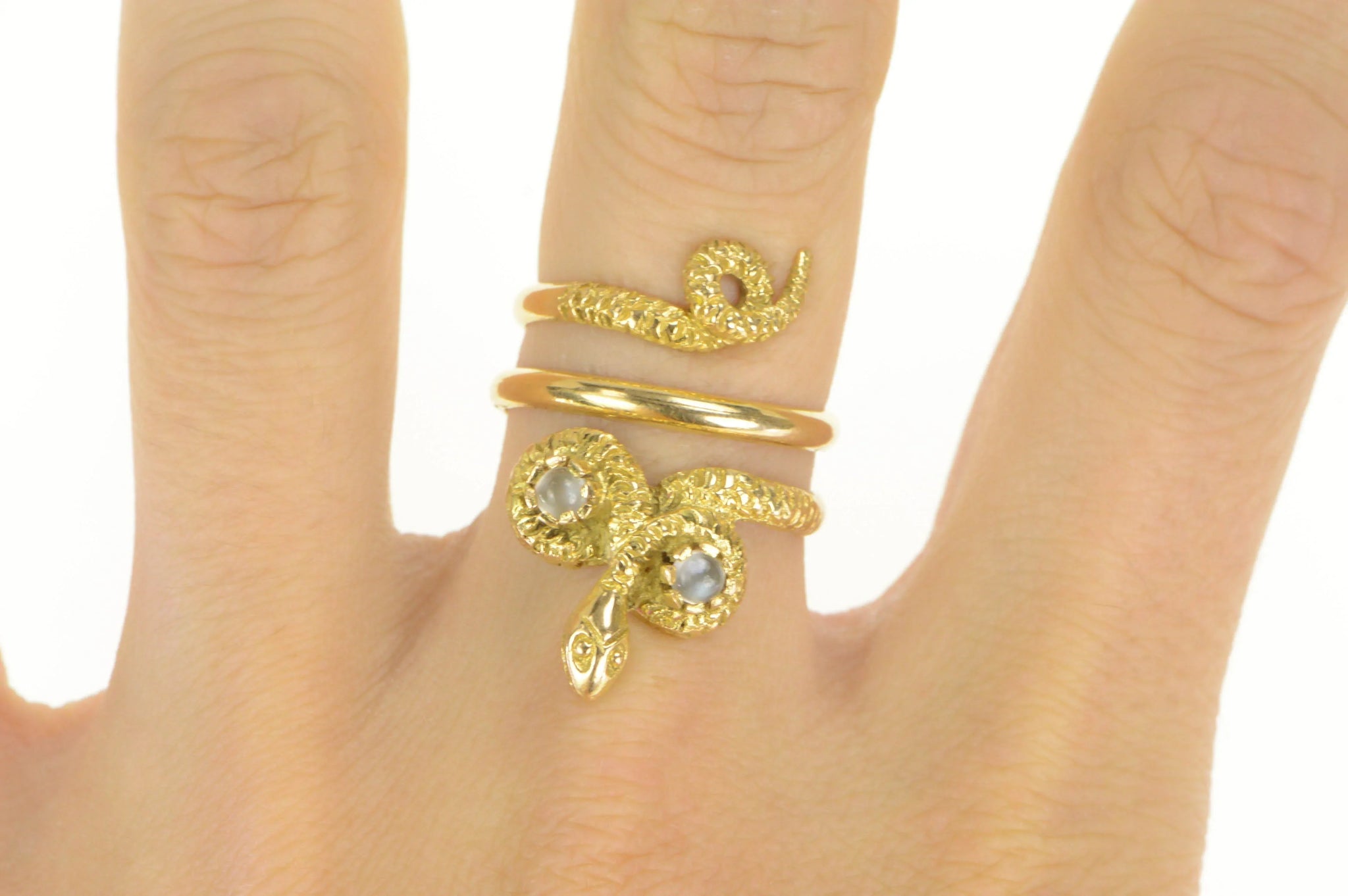 18K Victorian Moonstone Eyed Snake Serpent Ring Yellow Gold