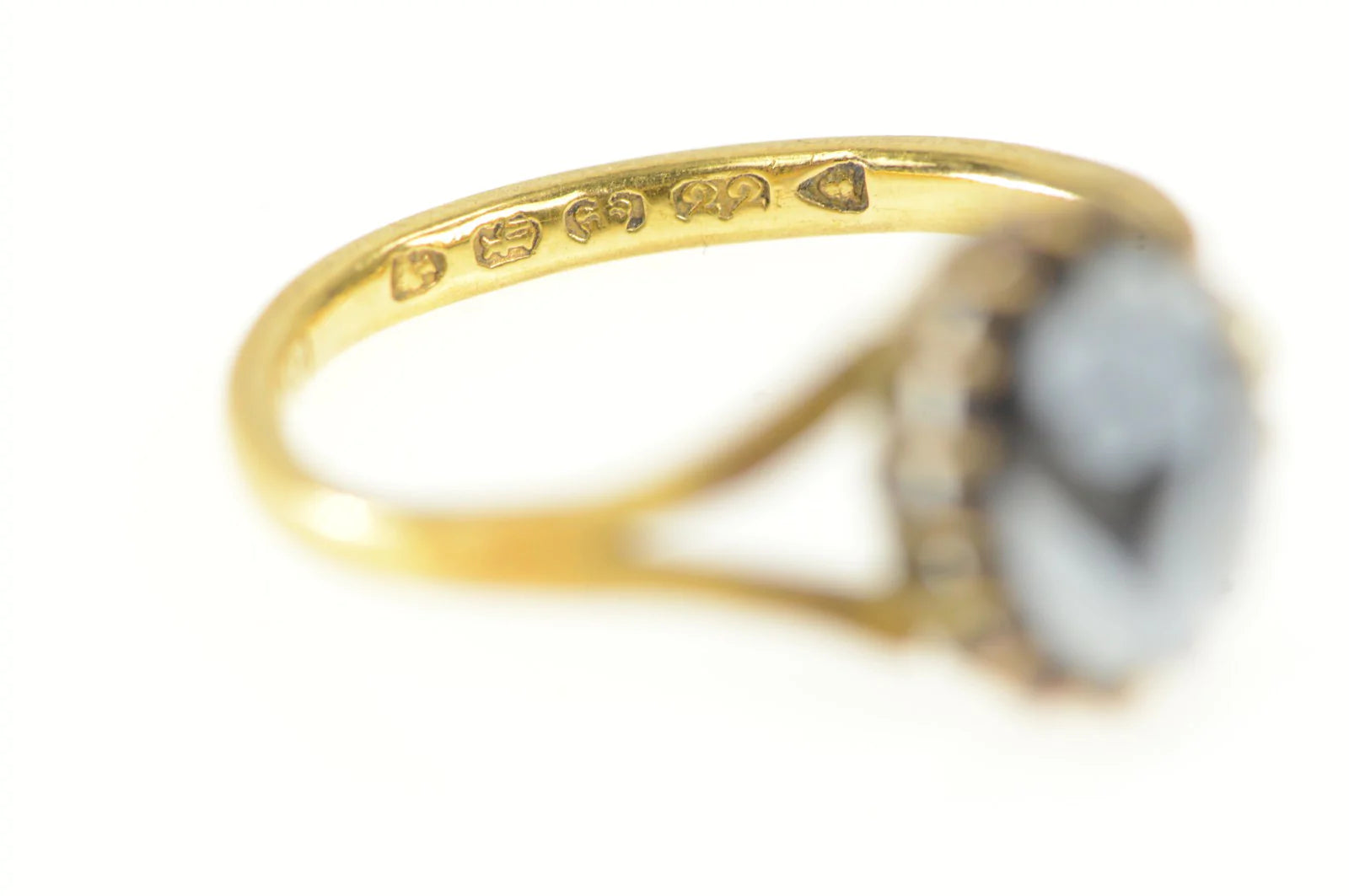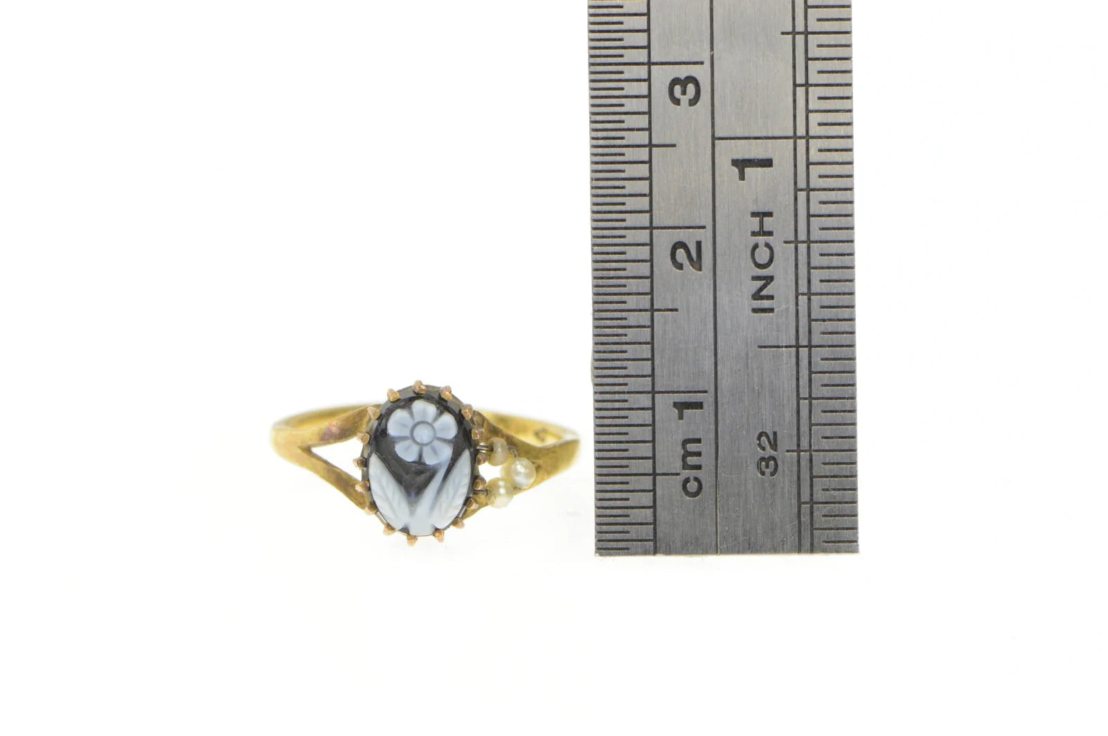 ·Item: 22K Victorian Carved Agate Flower Seed Pearl Earrings Size 6.75 Yellow Gold