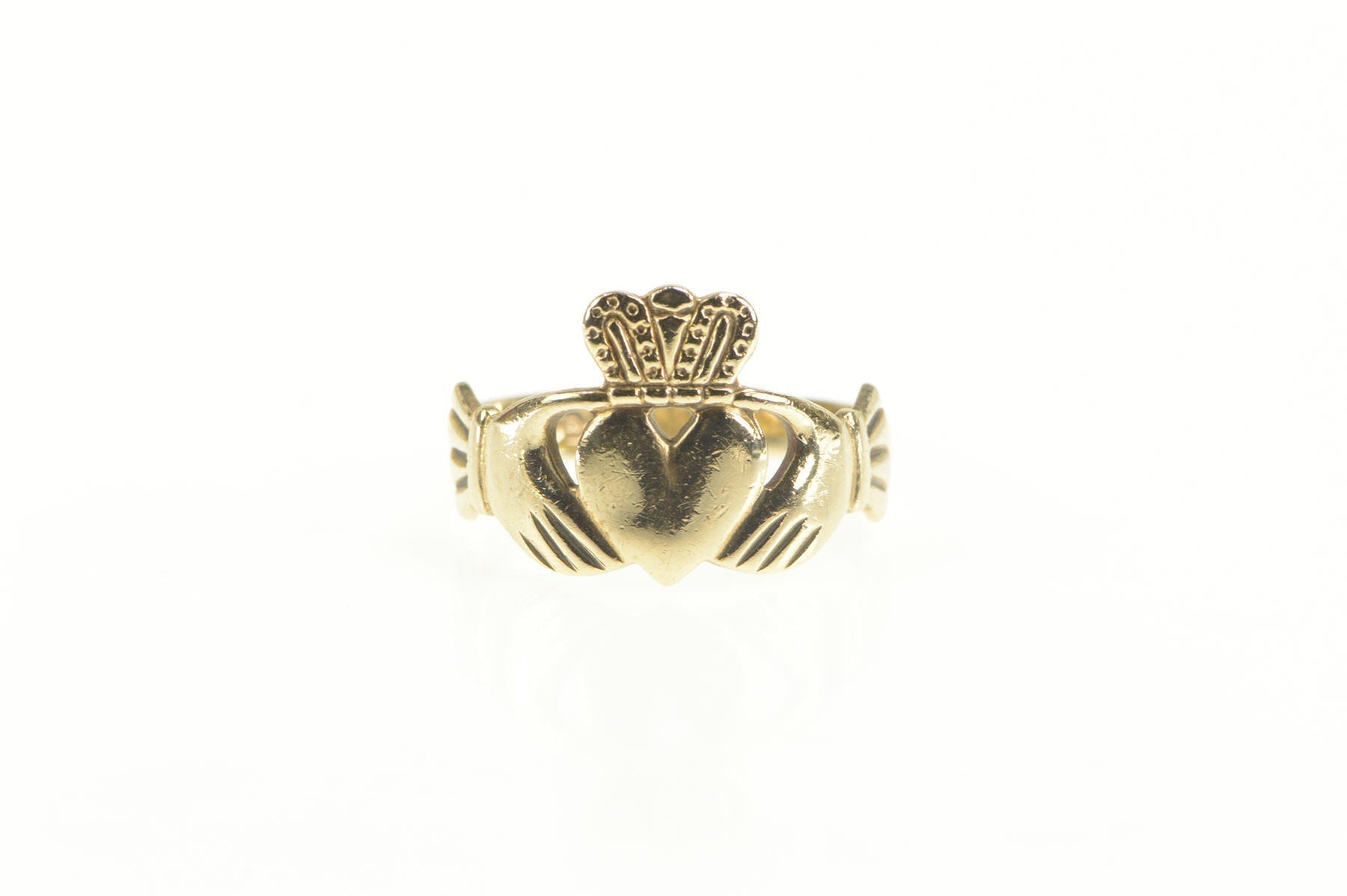 ·Item: 9K Irish Claddagh Traditional Celtic Loyalty Ring Size 5.25 Yellow Gold