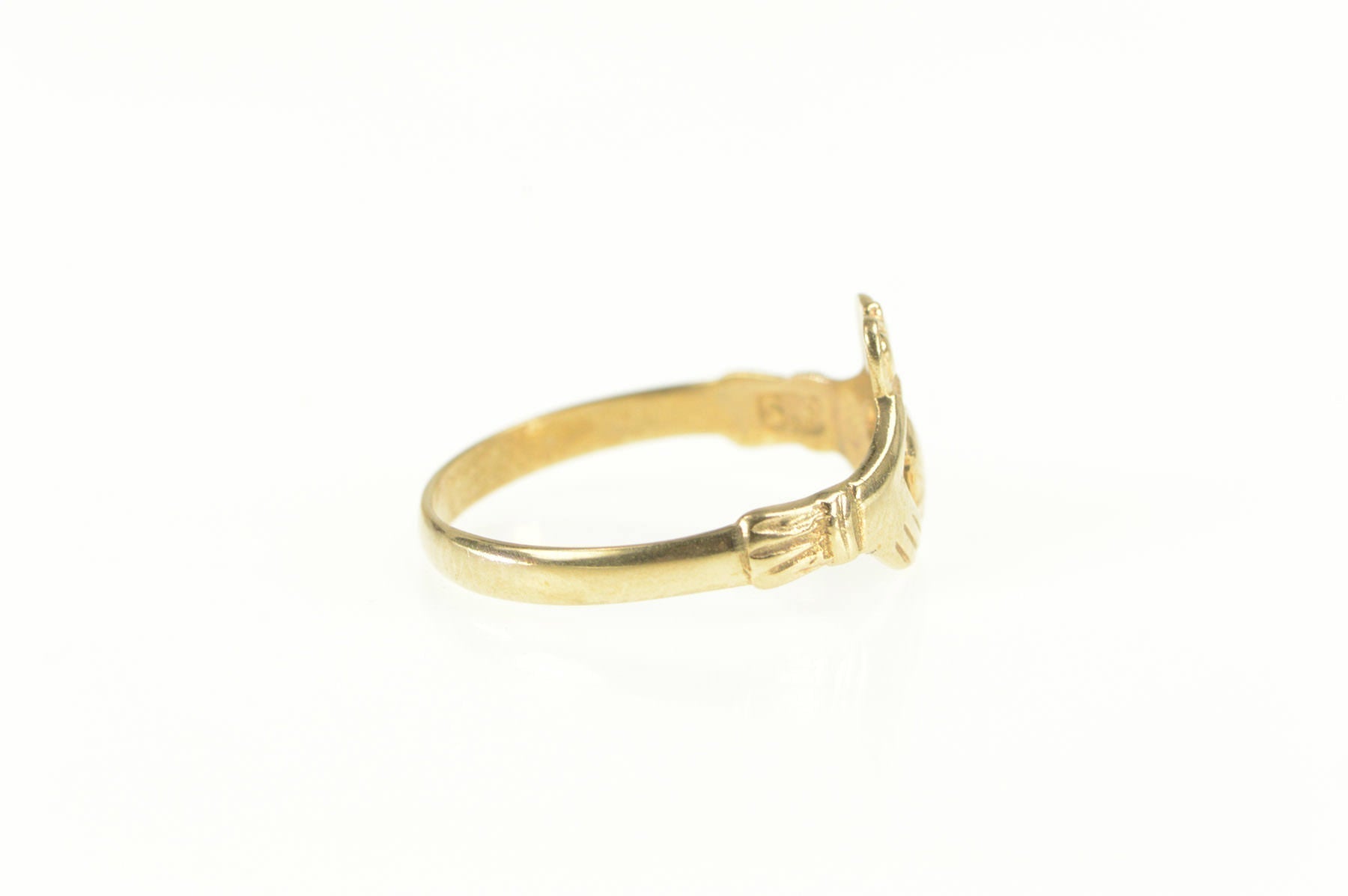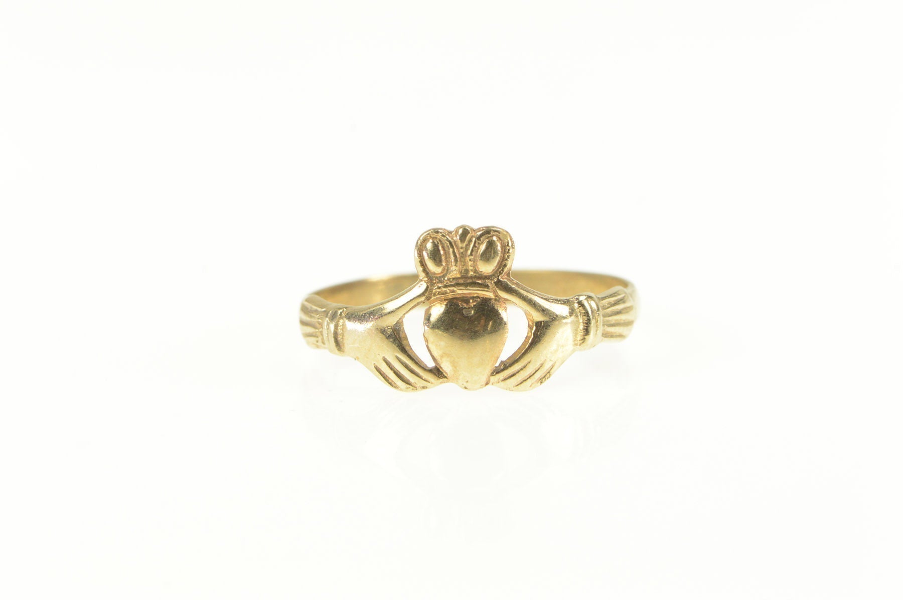 ·Item: 9K Traditional Claddagh Celtic Irish Loyalty Ring Size 7.75 Yellow Gold