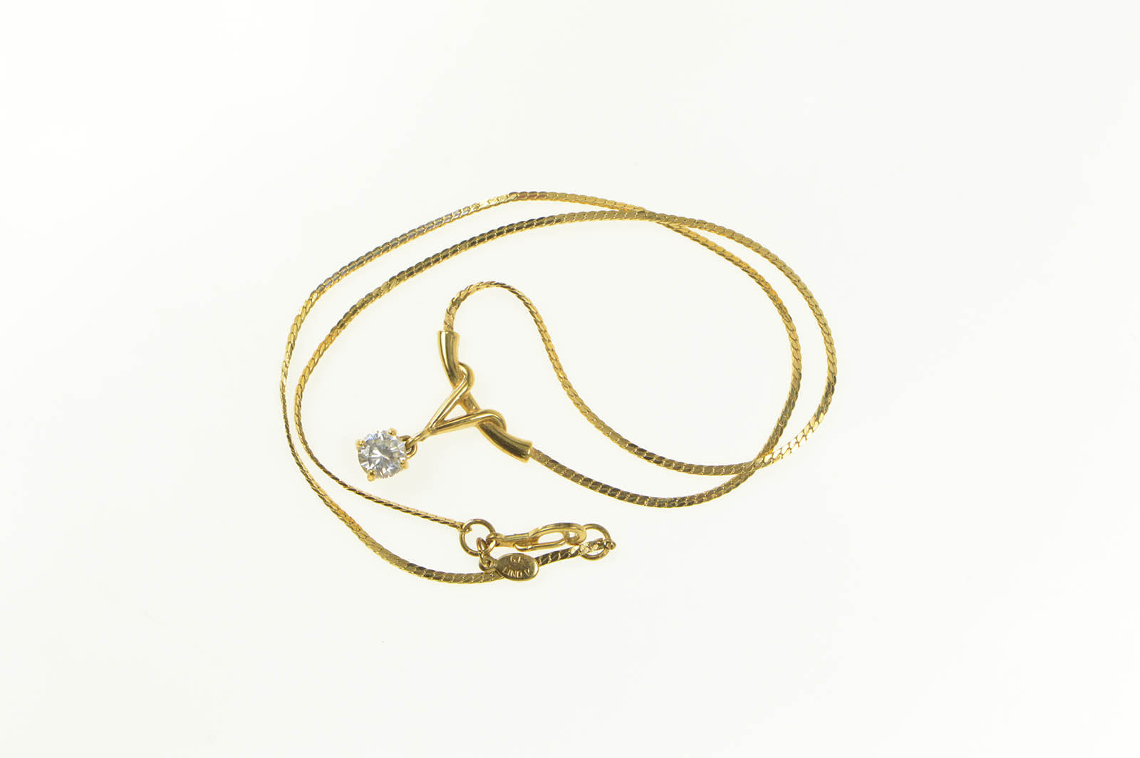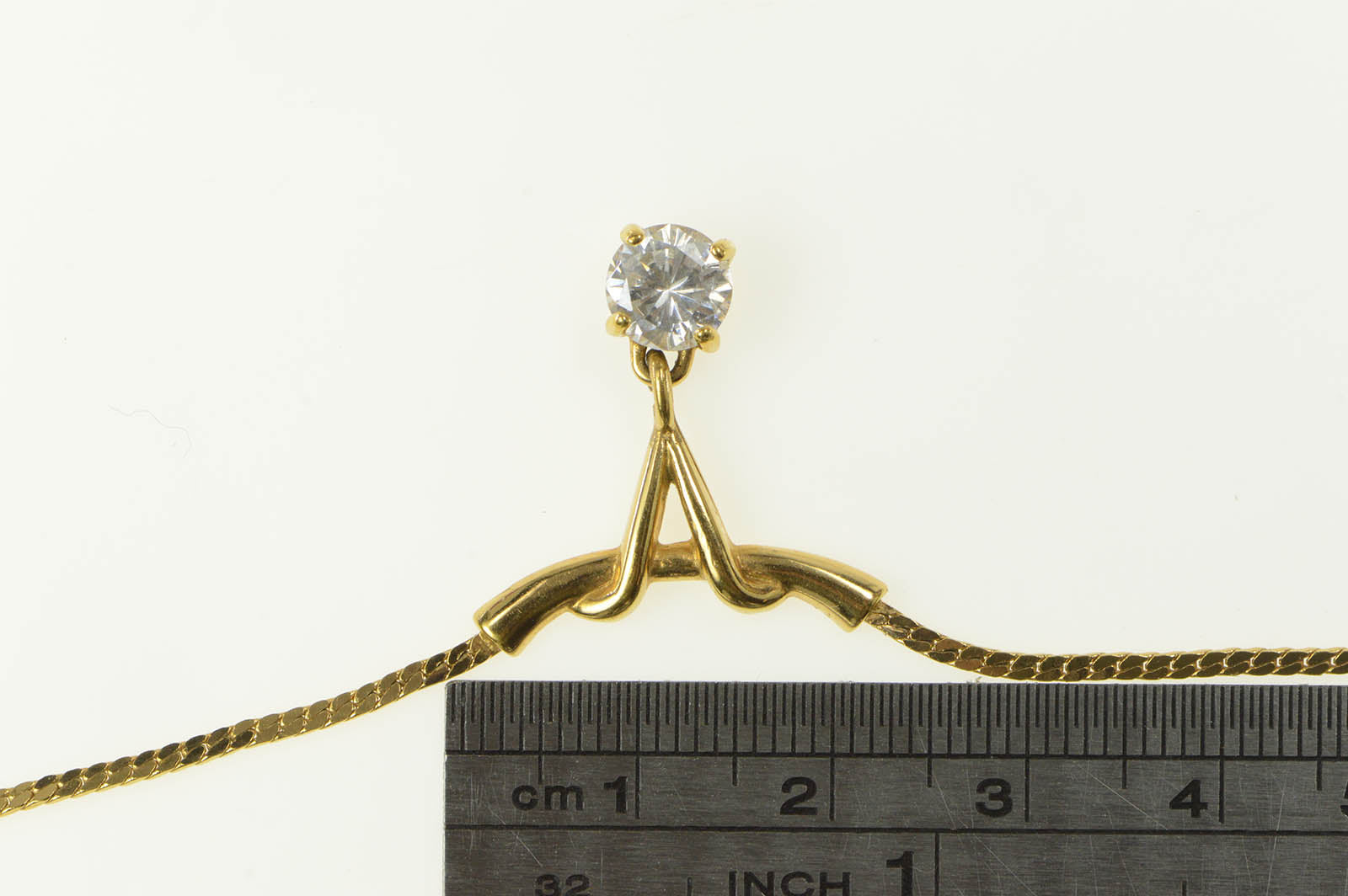 Gold Filled Curved CZ Dangle Drop Herringbone Chain Necklace 17.5"