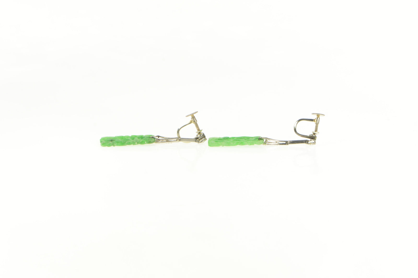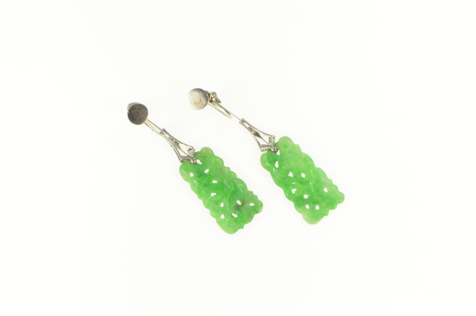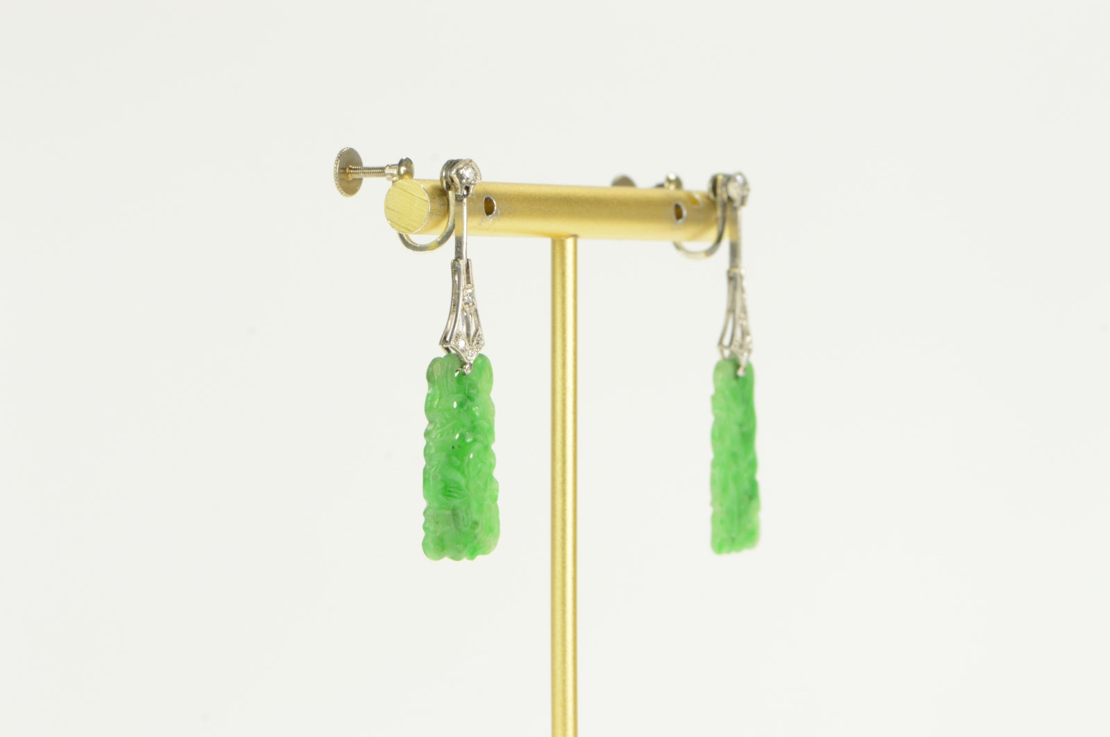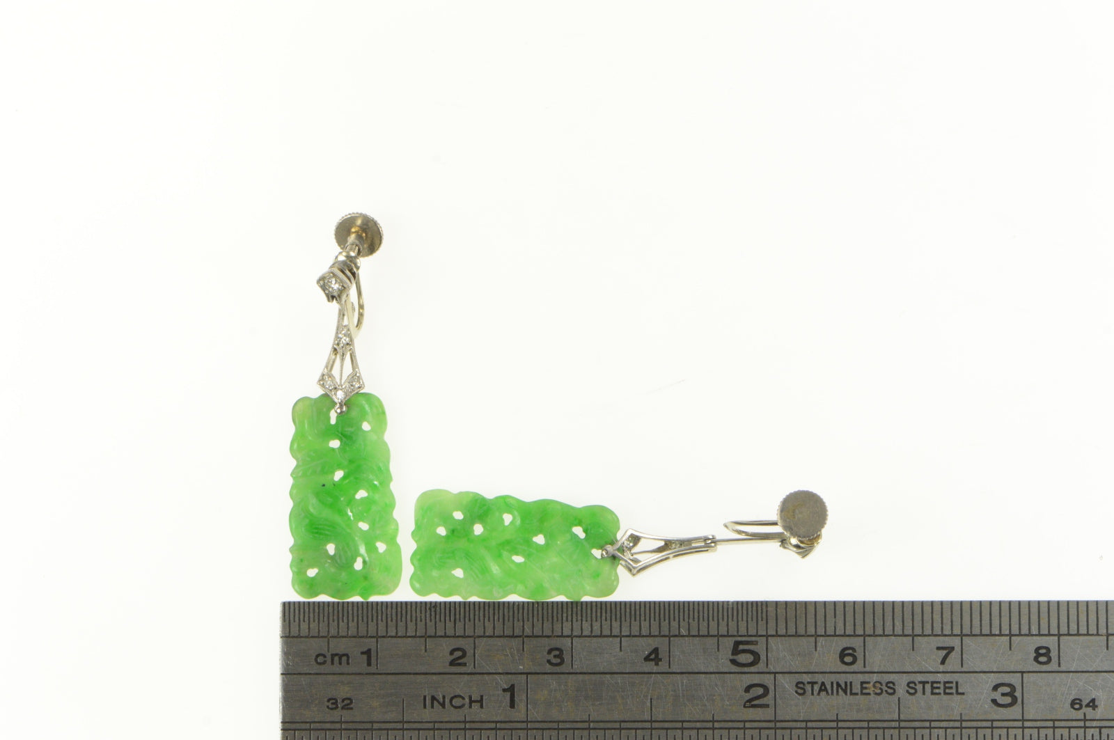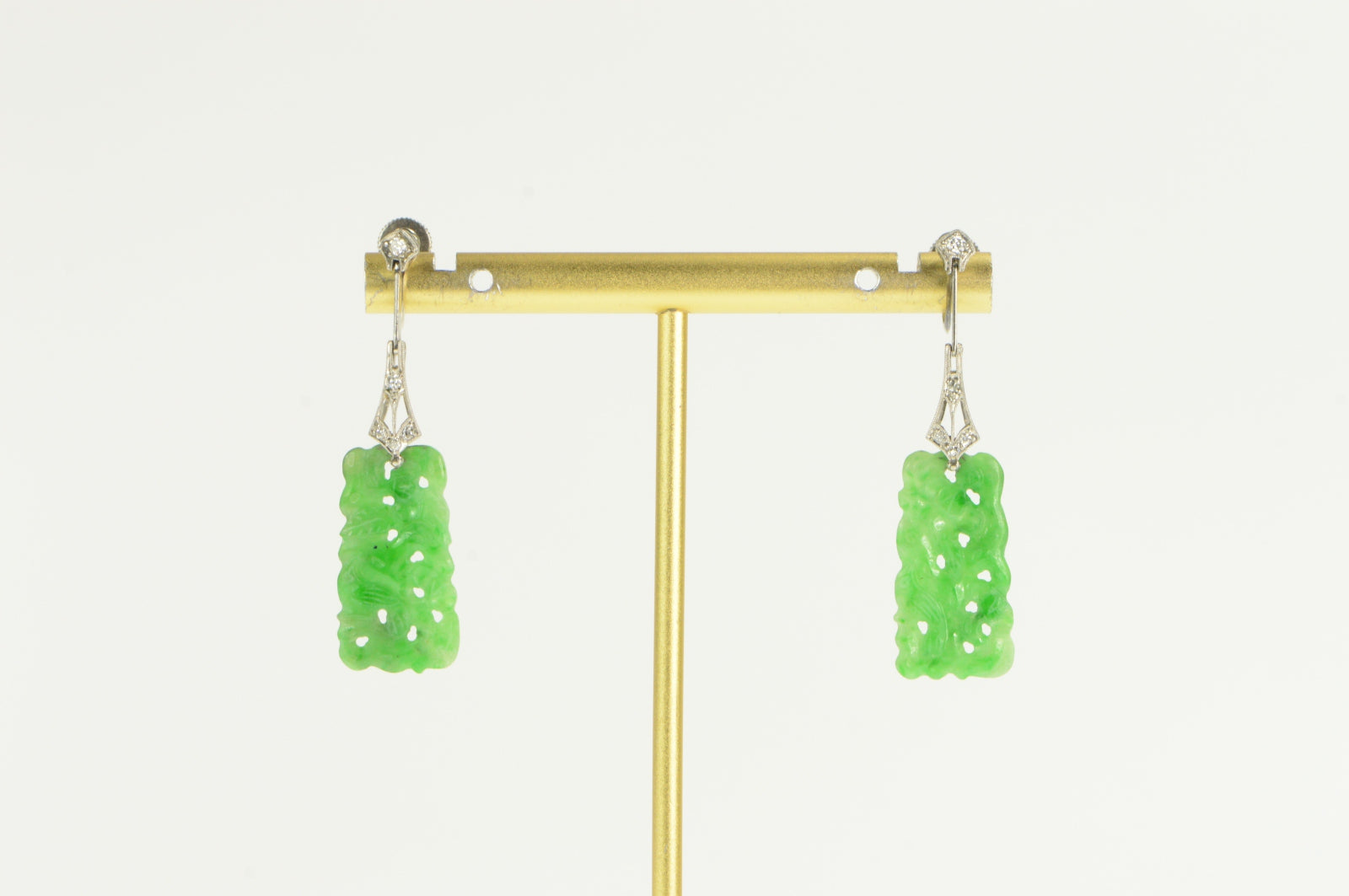 ·Item: Platinum Carved Floral Jade Diamond Dangle Screw Back Earrings