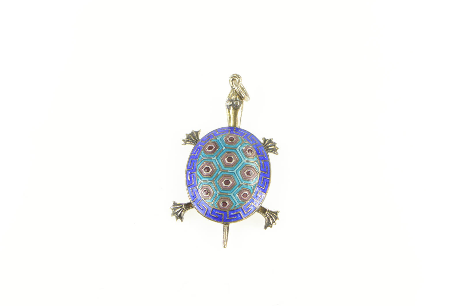 ·Item: Silver Articulated Enamel Box Turtle Artisan Animal Charm/Pendant