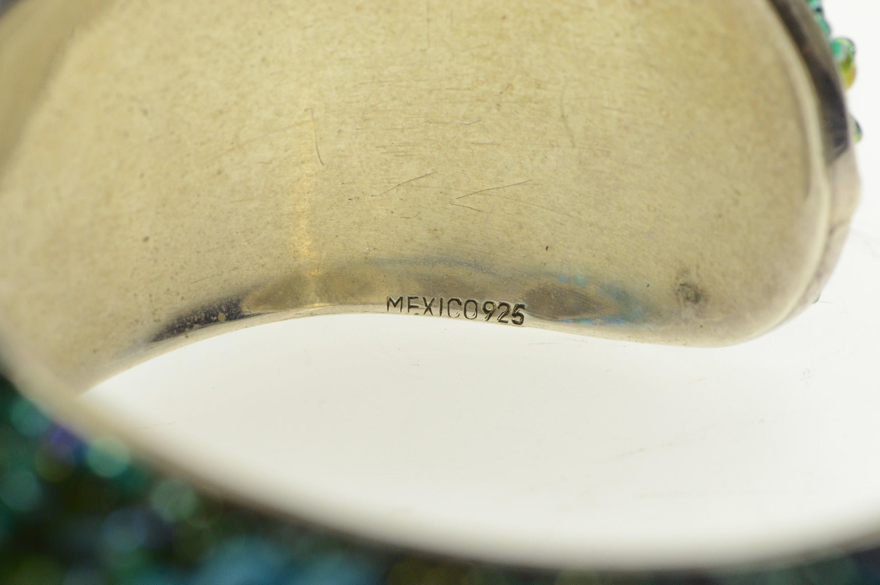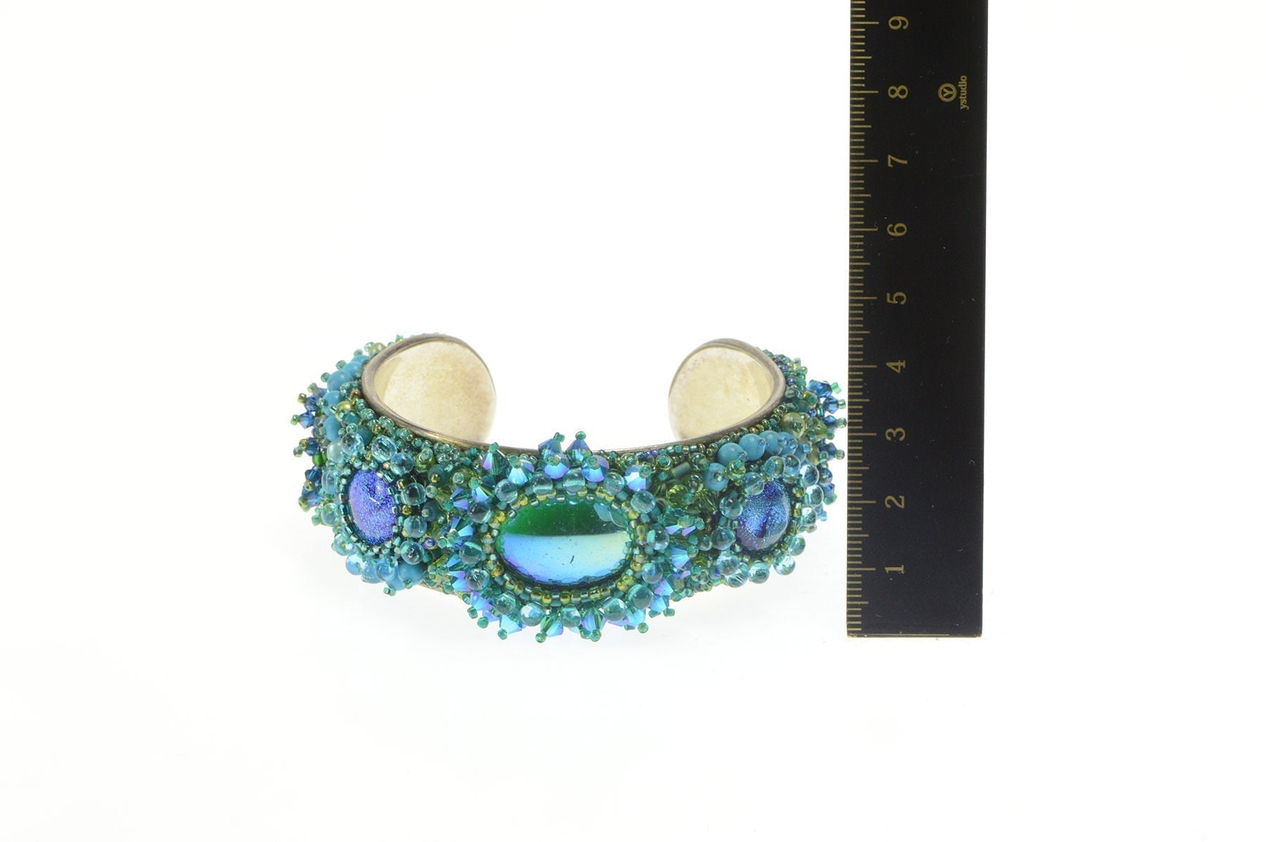 ·Item: Sterling Silver Blue Beaded Art Glass Fringe Statement Cuff Bracelet 6.75"
