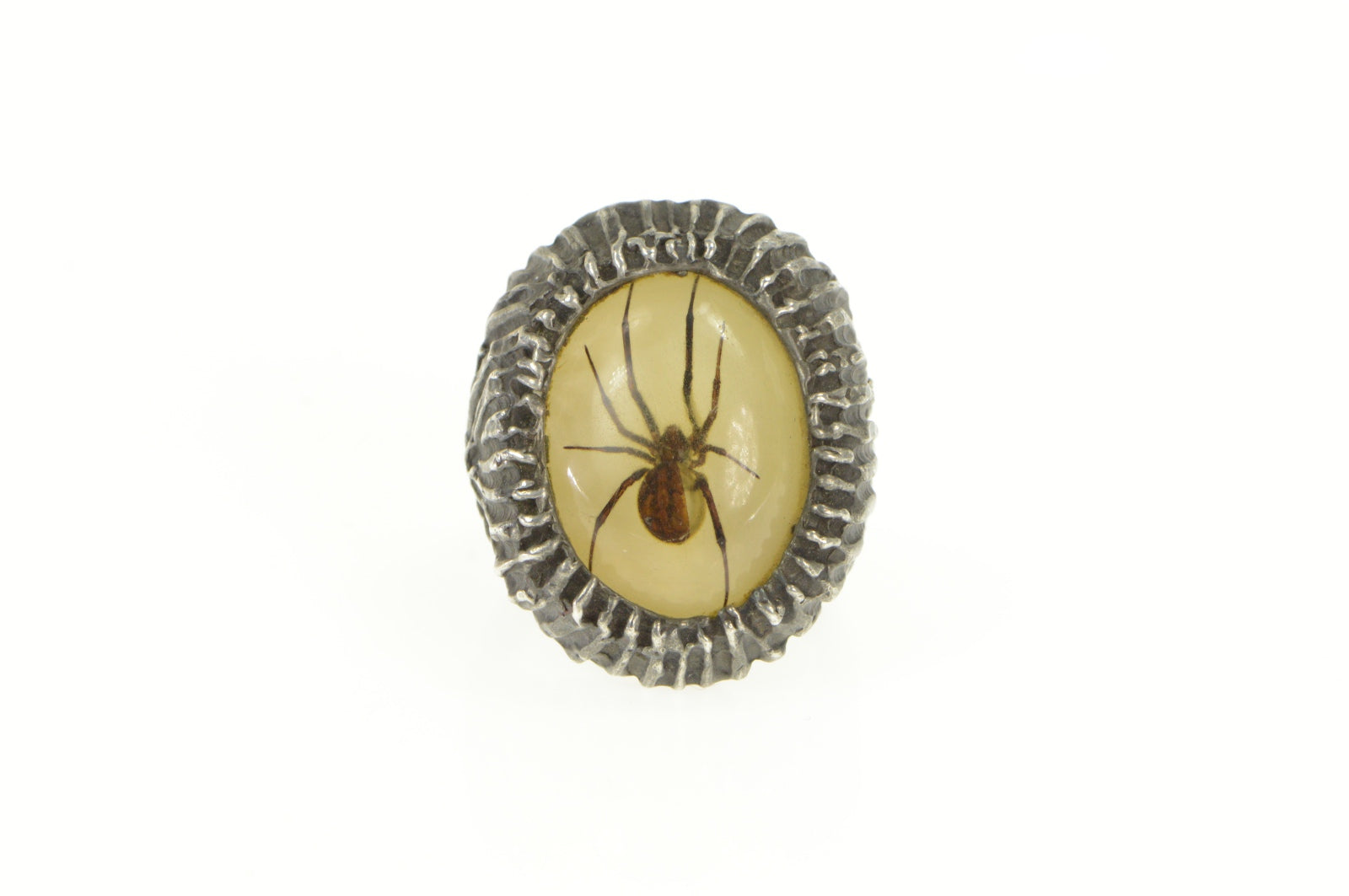 ·Item: Sterling Silver Resin Encased Brown Recluse Spider Artisan Ring Size 8