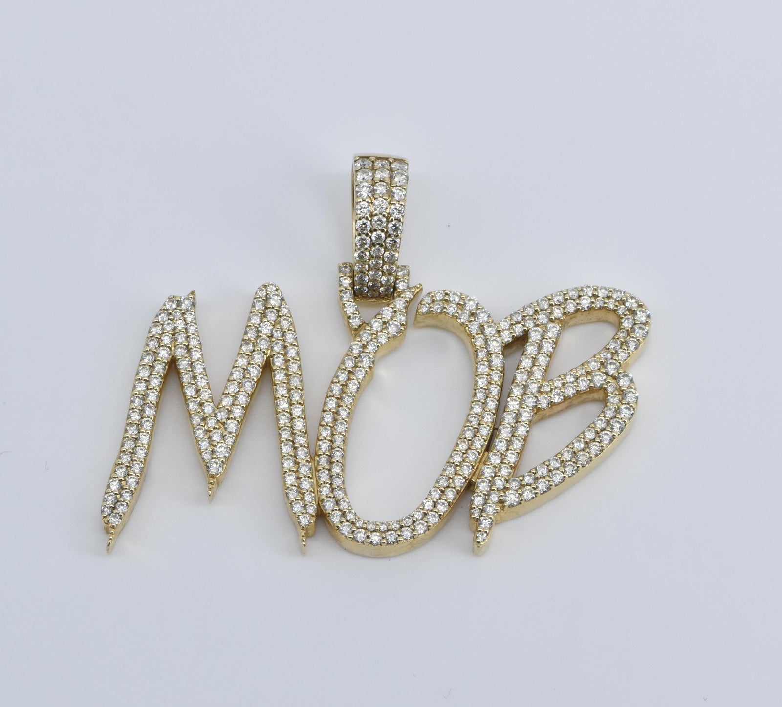 ·Item: 10K 3.50 Ctw Natural Diamond MOB Pave Initial Name Pendant Yellow Gold