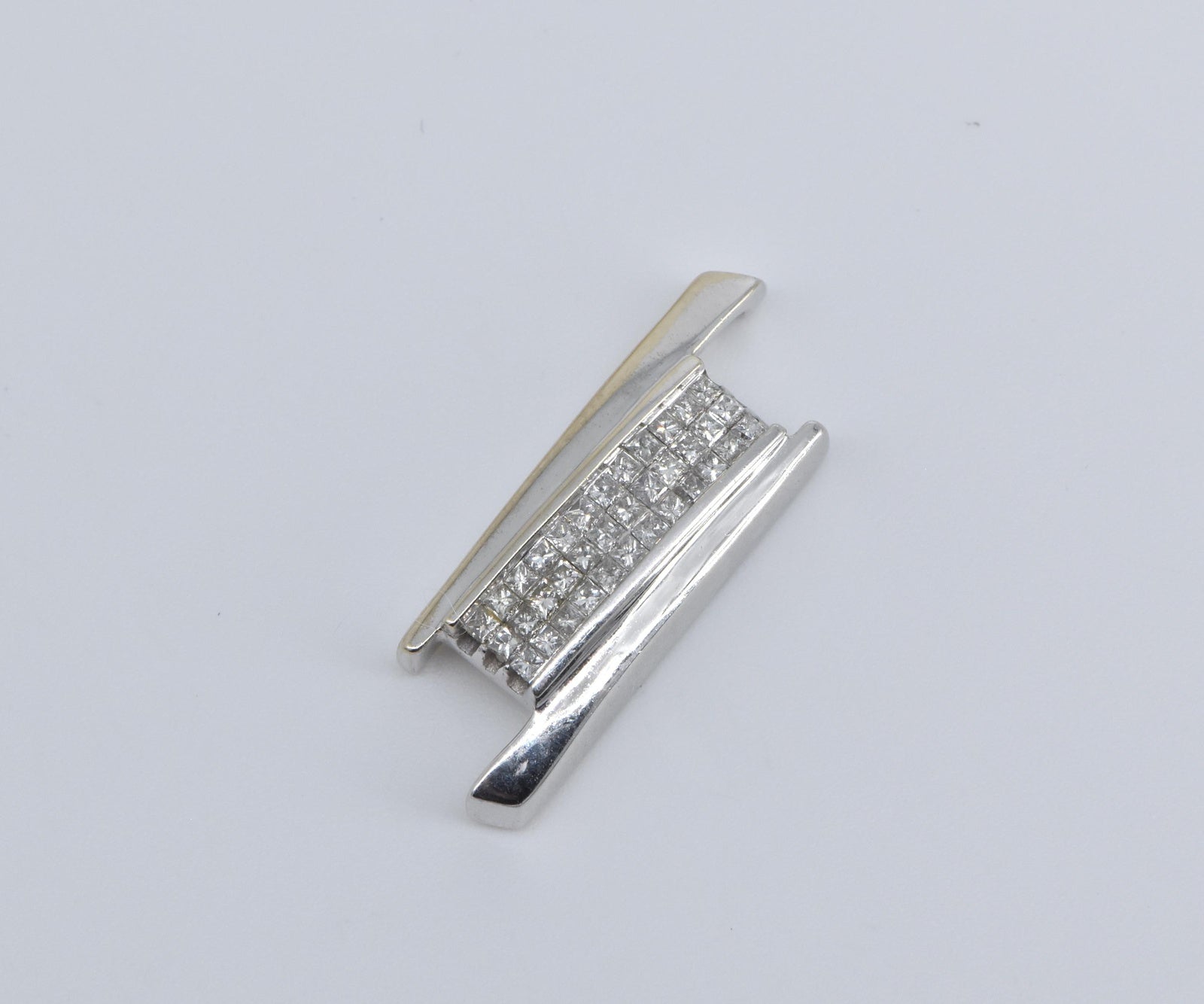 ·Item: 14K 0.50 Ctw Natural Princess Diamond Bar Slanted Pendant White Gold
