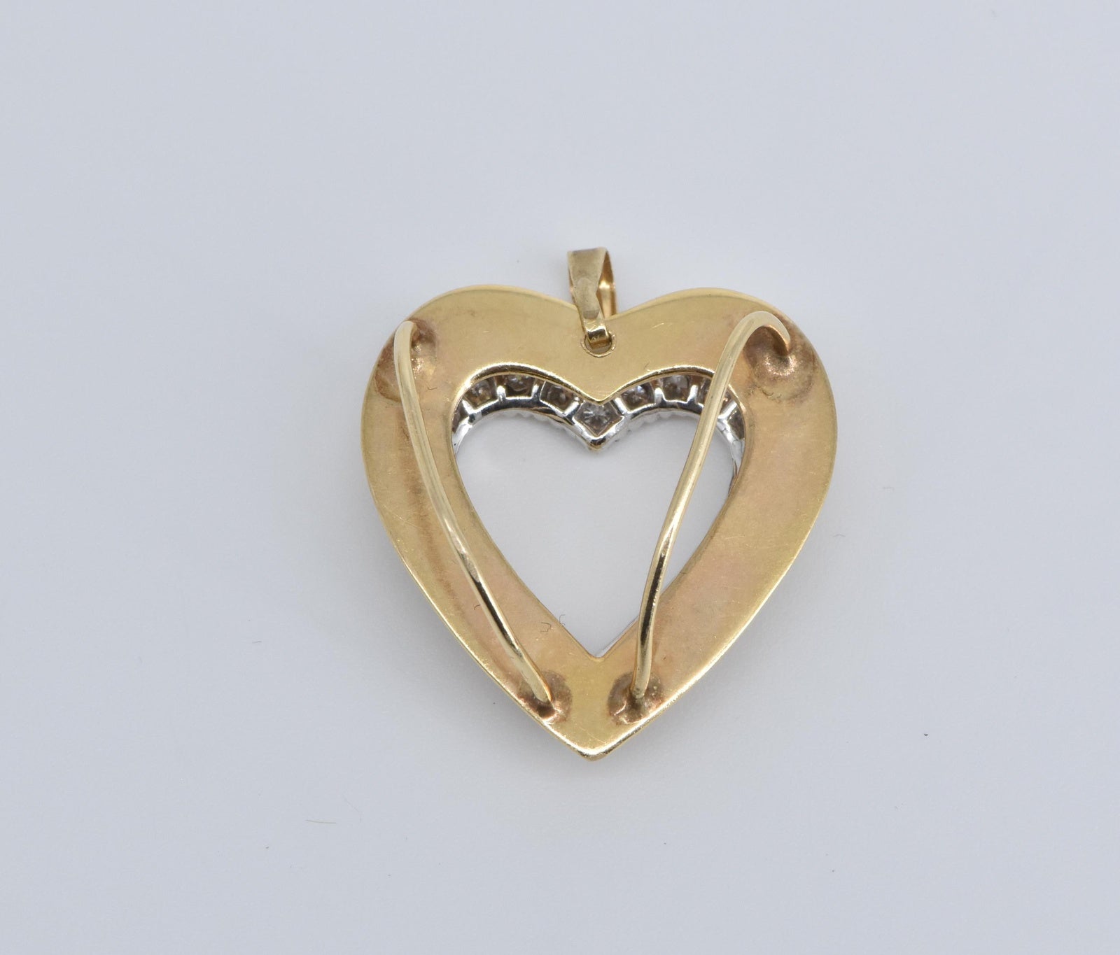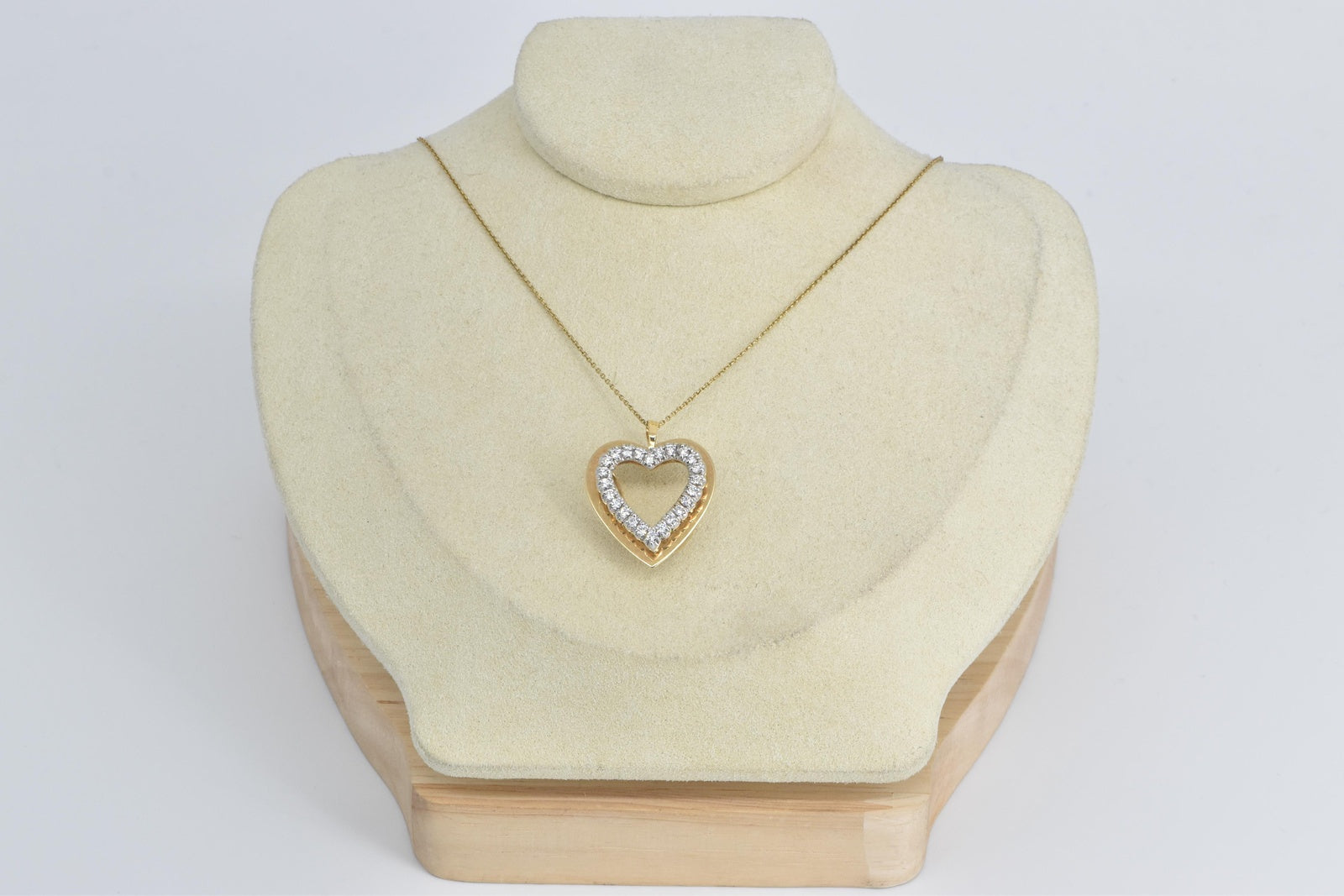 ·Item: 14K 0.75 Ctw Natural Diamond Raised Heart Vintage Pendant Yellow Gold