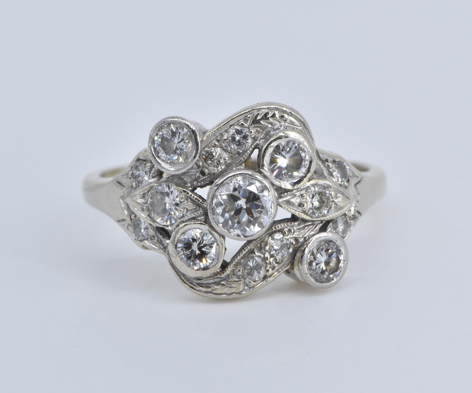 ·Item: 14K 0.86 Ctw Art Deco OEC Natural Diamond Ring Size 9.25 White Gold