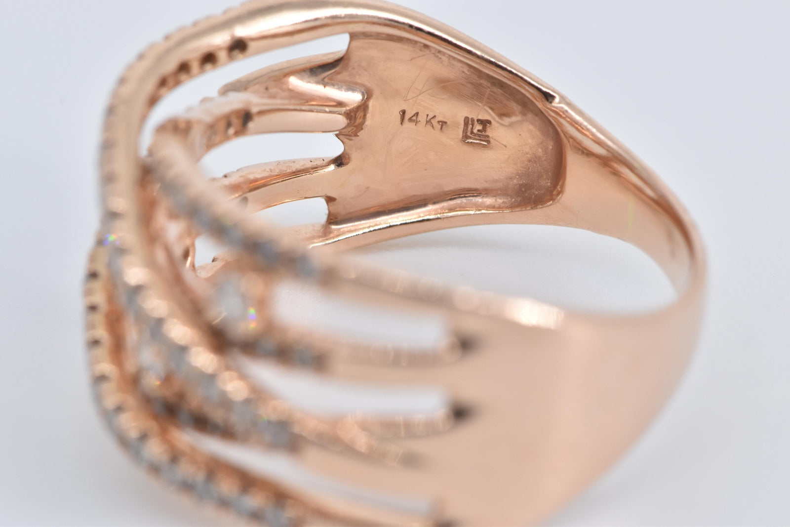 ·Item: 14K 1.00 Ctw Natural Diamond Layered Statement Band Ring Size 10 Rose Gold