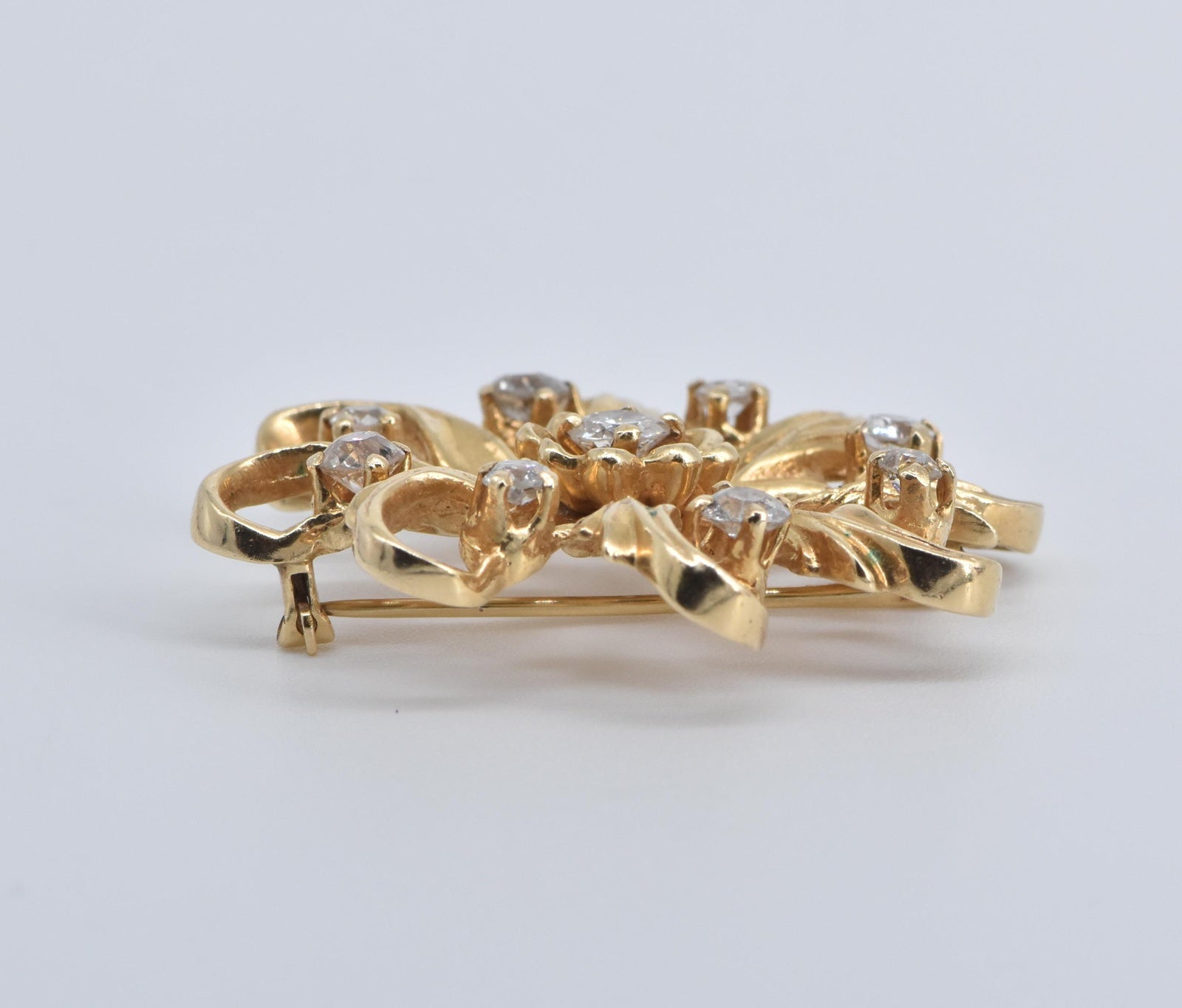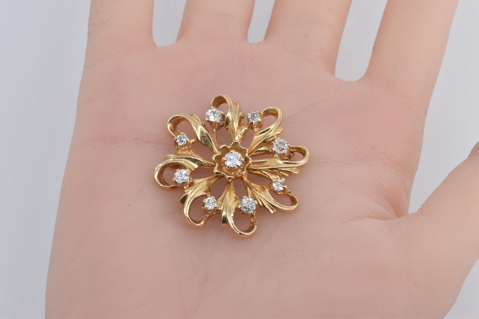 ·Item: 14K 1.25 Ctw Natural Diamond Round Leaf Swirl Pin/Brooch Yellow Gold