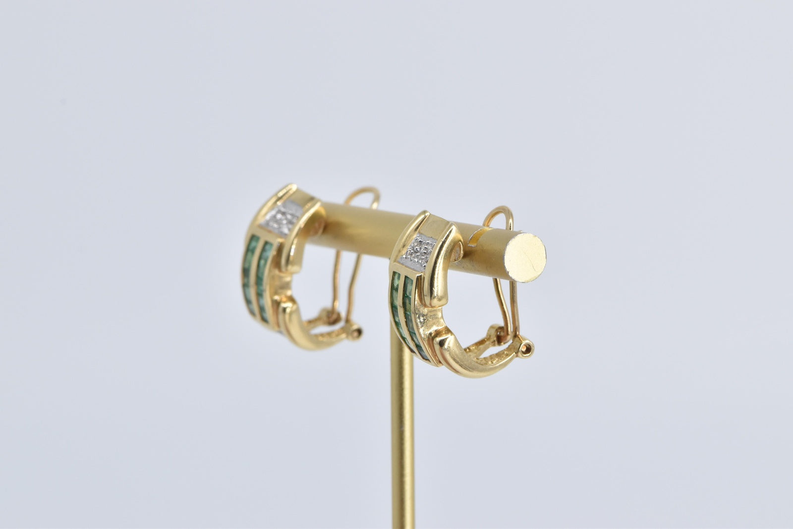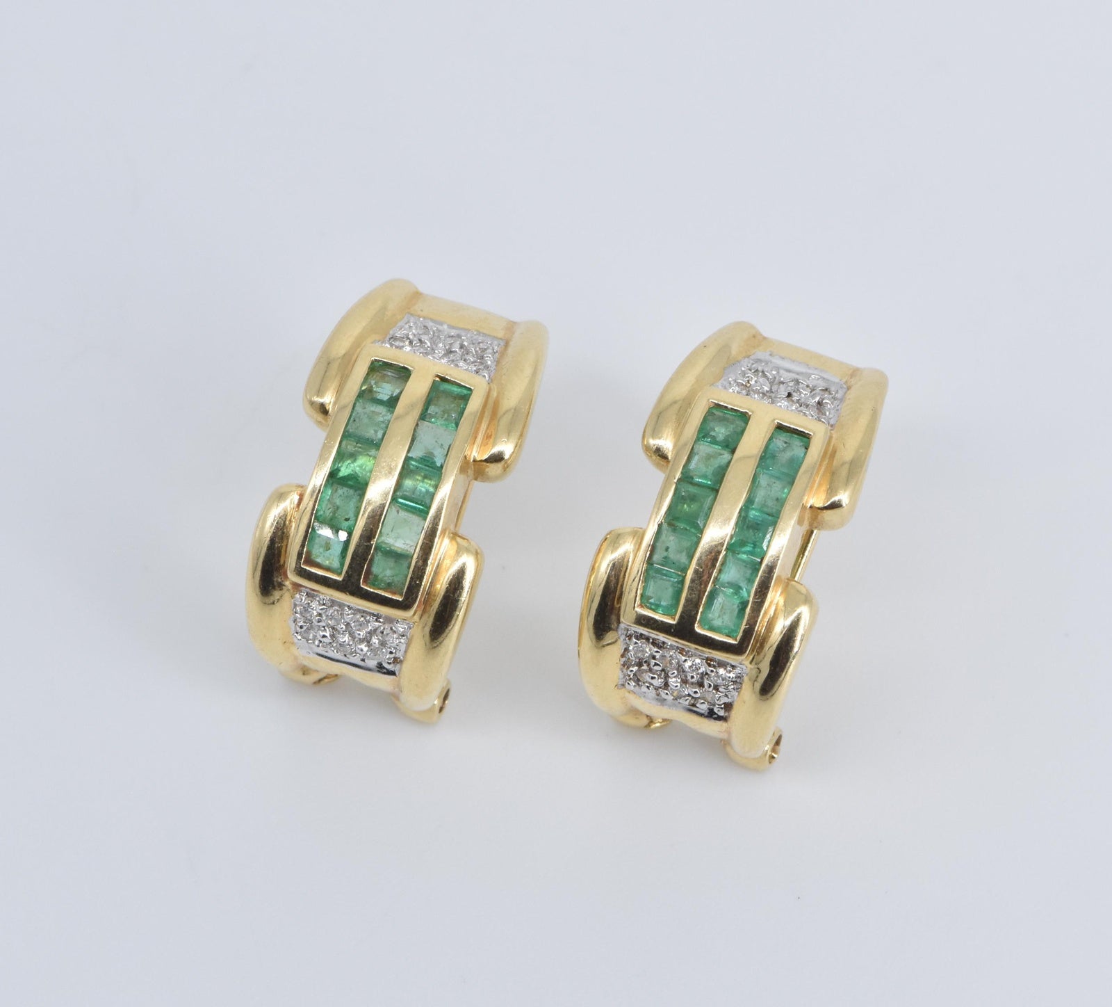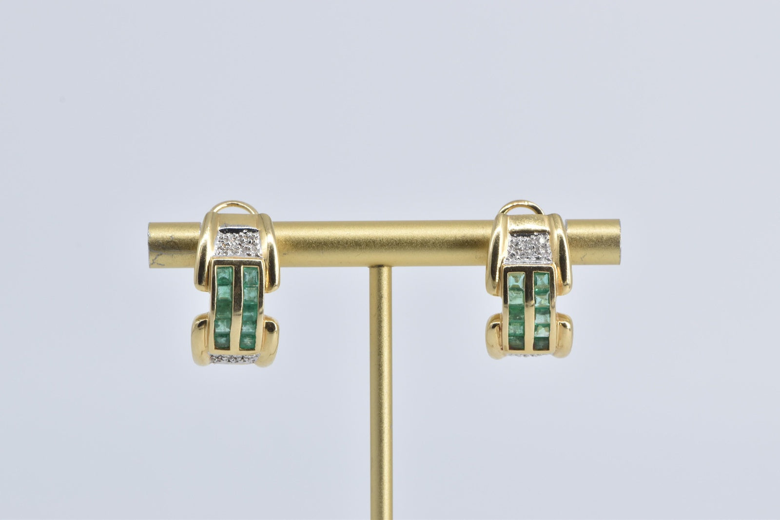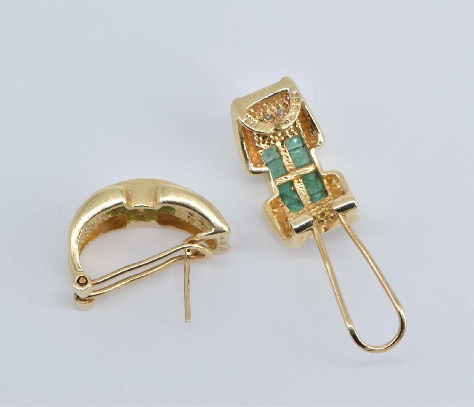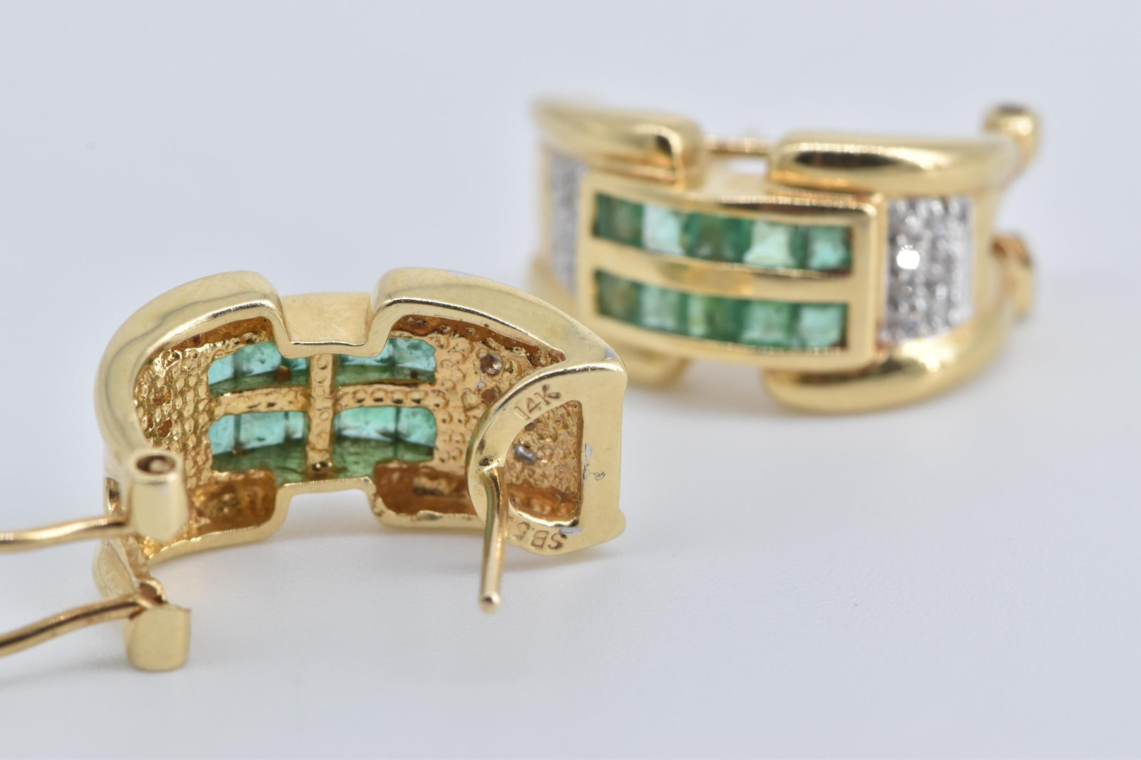 ·Item: 14K 1.65 Ctw Natural Emerald Diamond Statement Earrings Yellow Gold