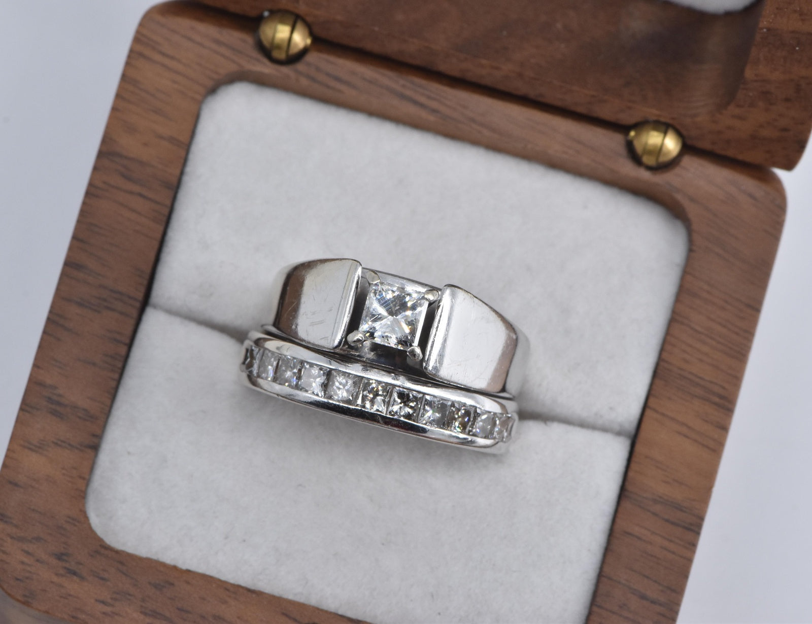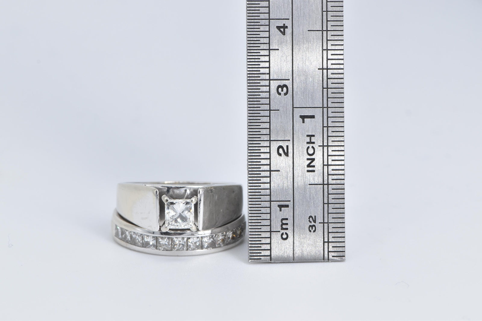 ·Item: 14K 2.12 Ctw Natural Princess Diamond Bridal Set Ring Size 8.5 White Gold
