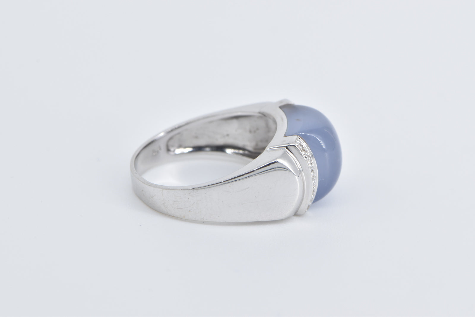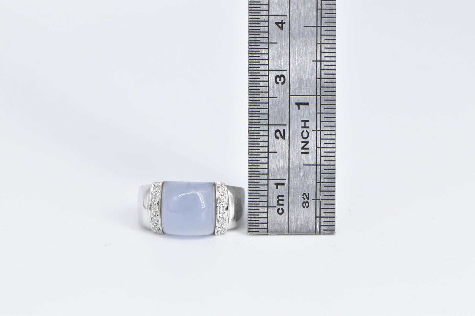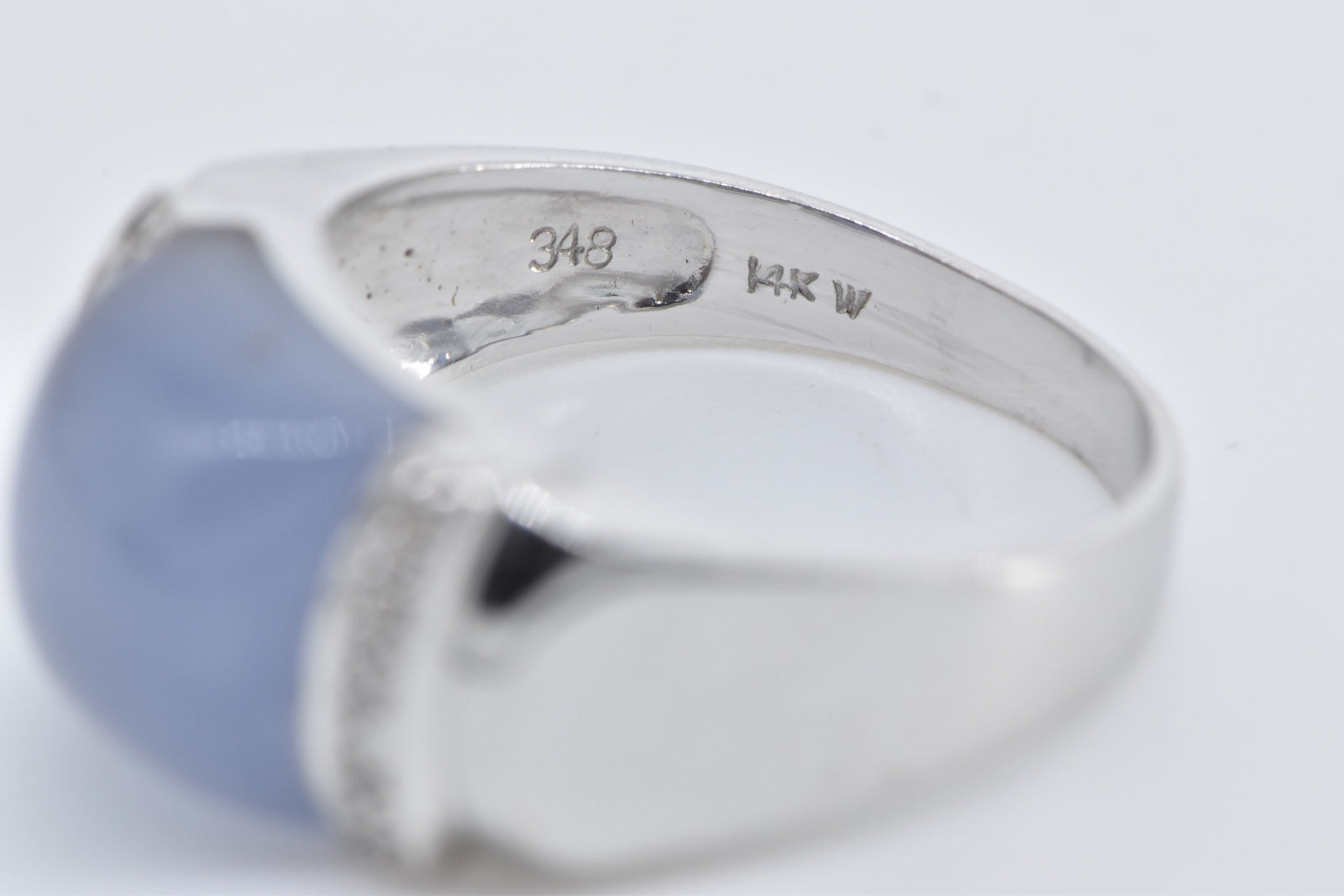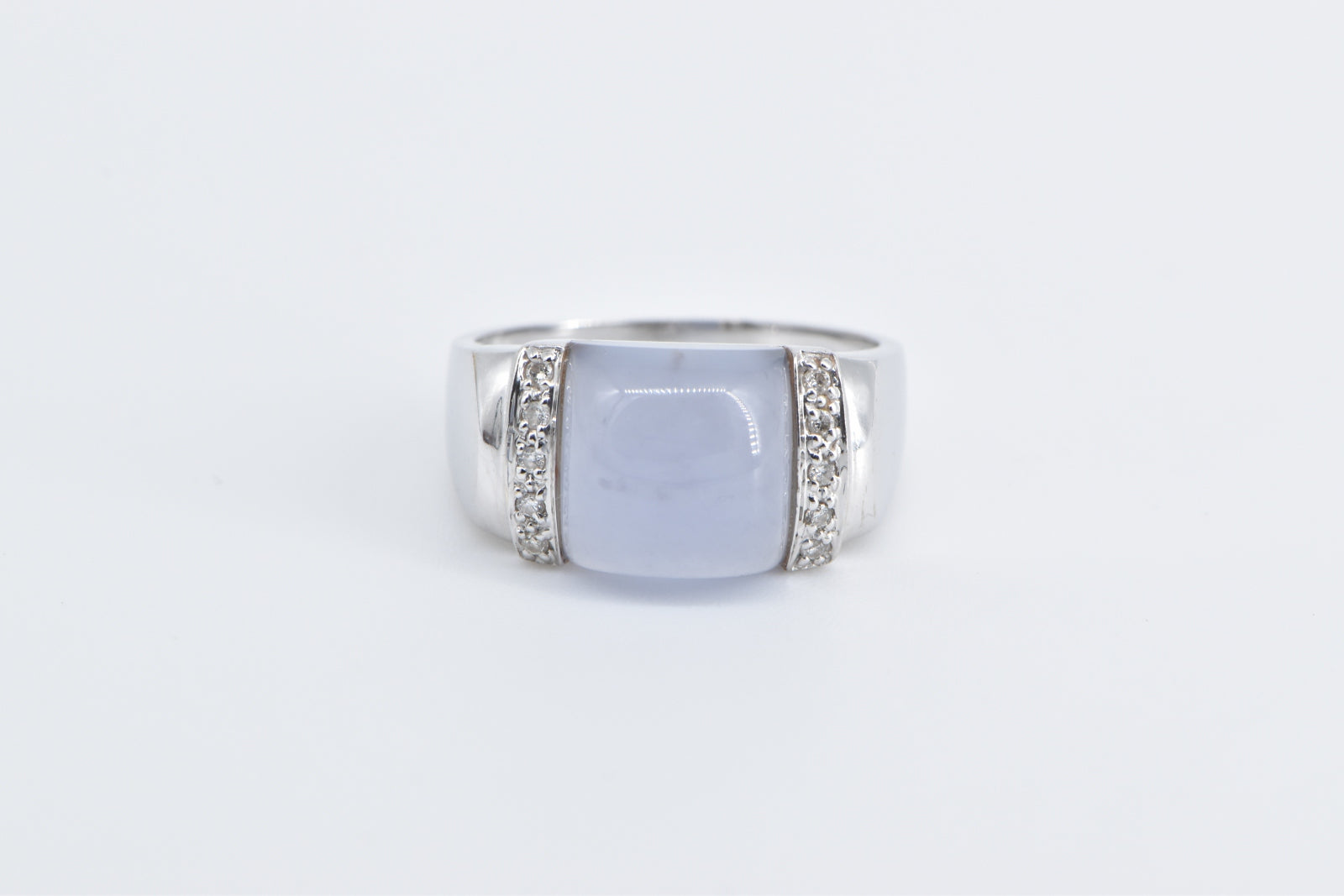 ·Item: 14K Lilac Jade Diamond Domed Fashion Statement Ring Size 6.75 White Gold