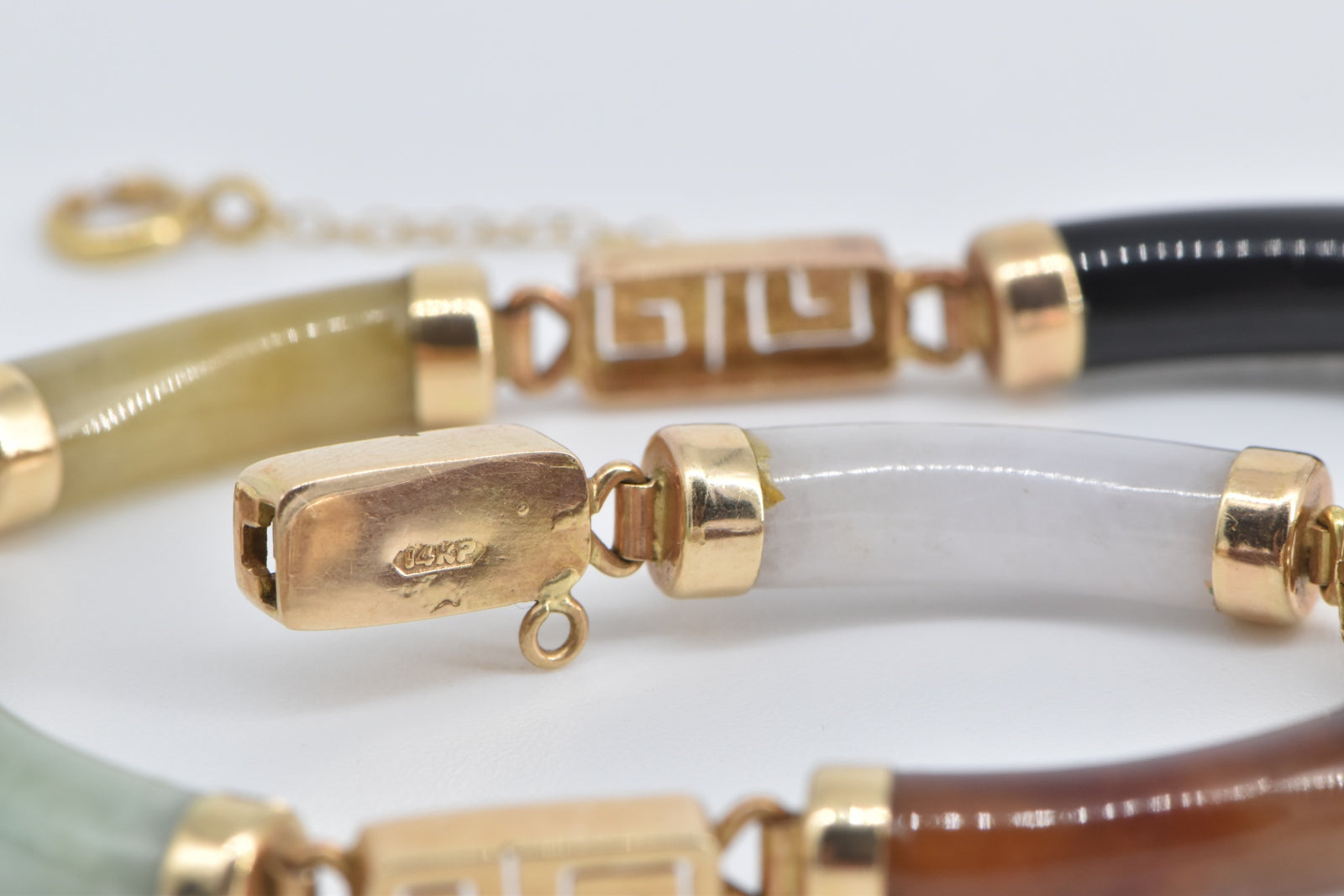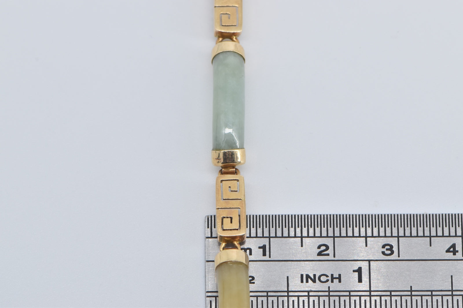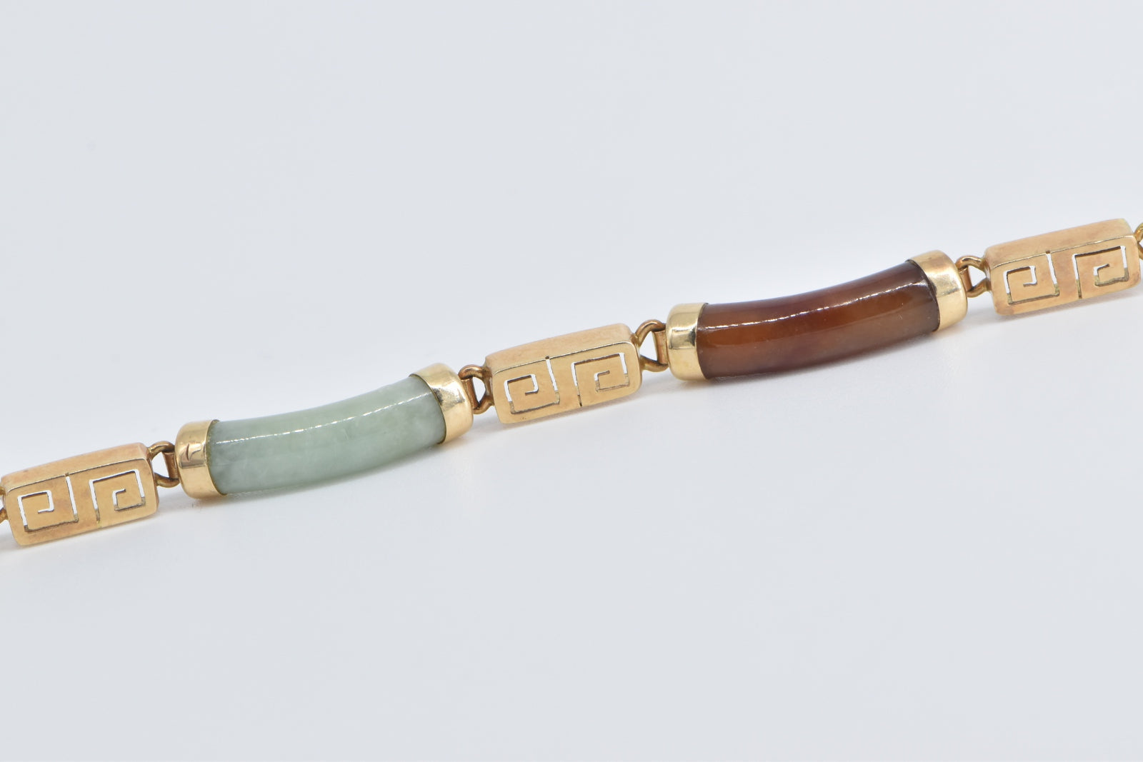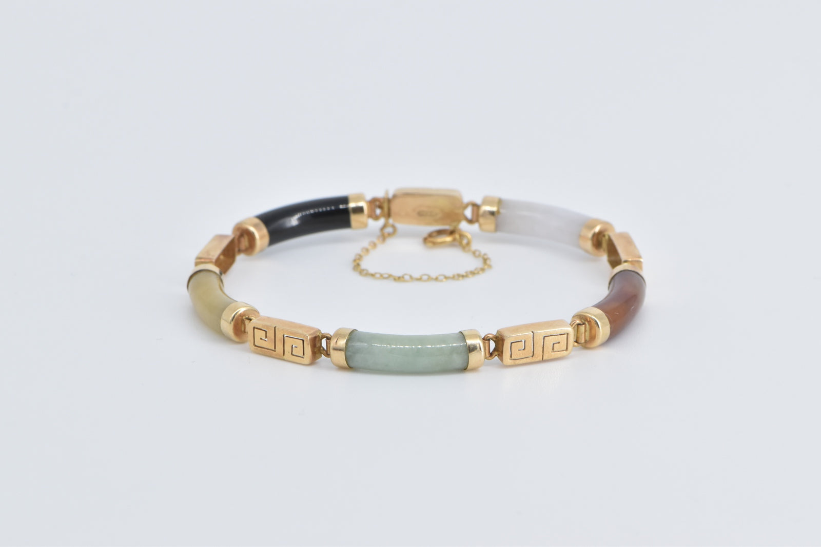 ·Item: 14K Multi Colored Jadeite Curved Bar Greek Wave Bracelet 7" Yellow Gold