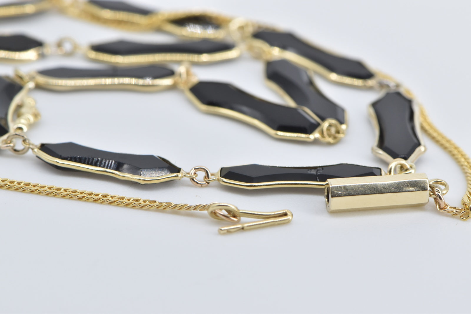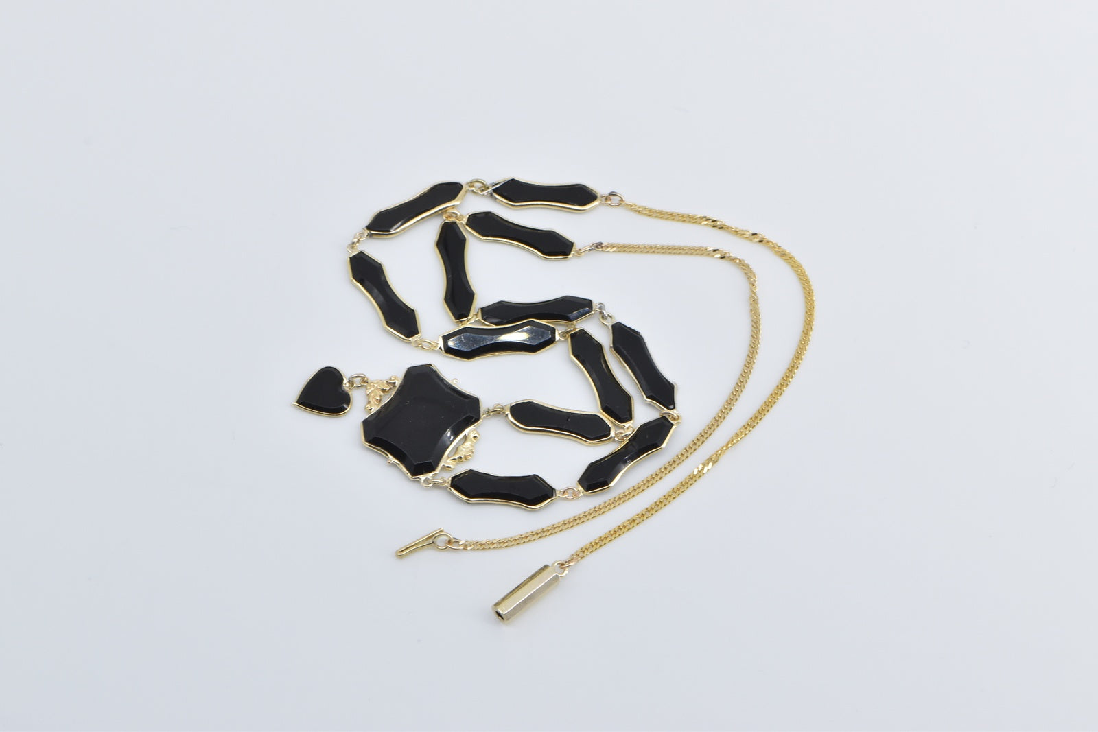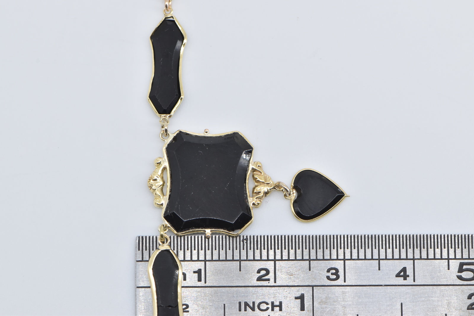 ·Item: 14K Ornate Black Onyx Drop Heart Mourning Necklace 18" Yellow Gold
