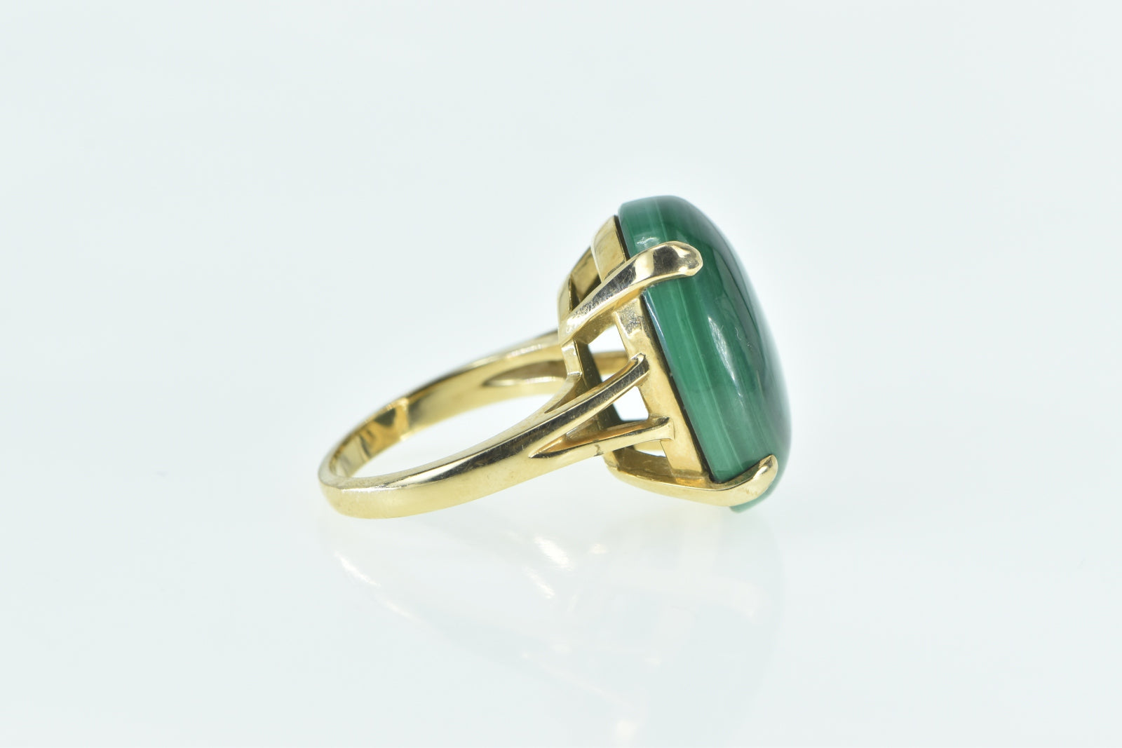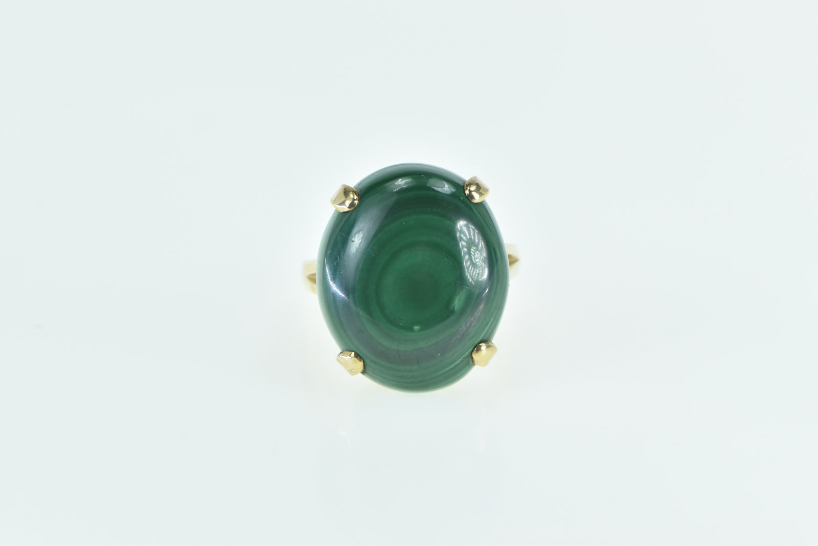 ·Item: 14K Oval Malachite Cabochon Vintage Statement Ring Size 6.75 Yellow Gold