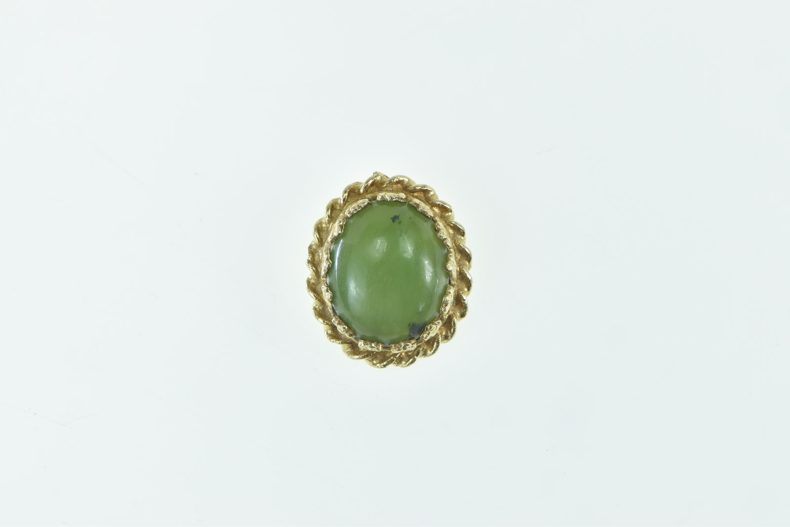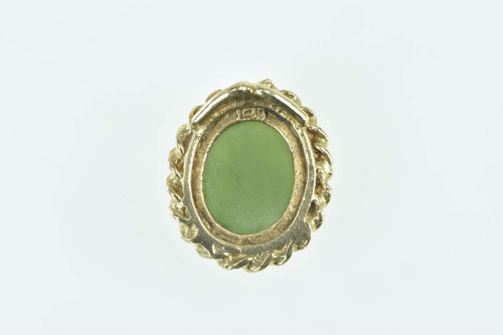 ·Item: 14K Oval Nephrite Cabochon Rope Trim Vintage Pendant Yellow Gold
