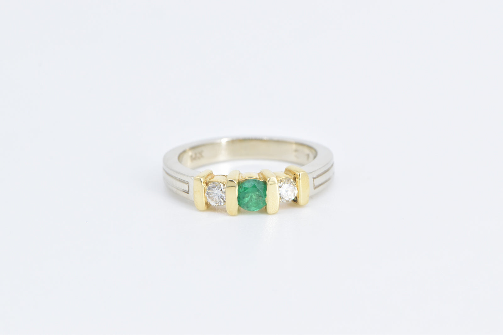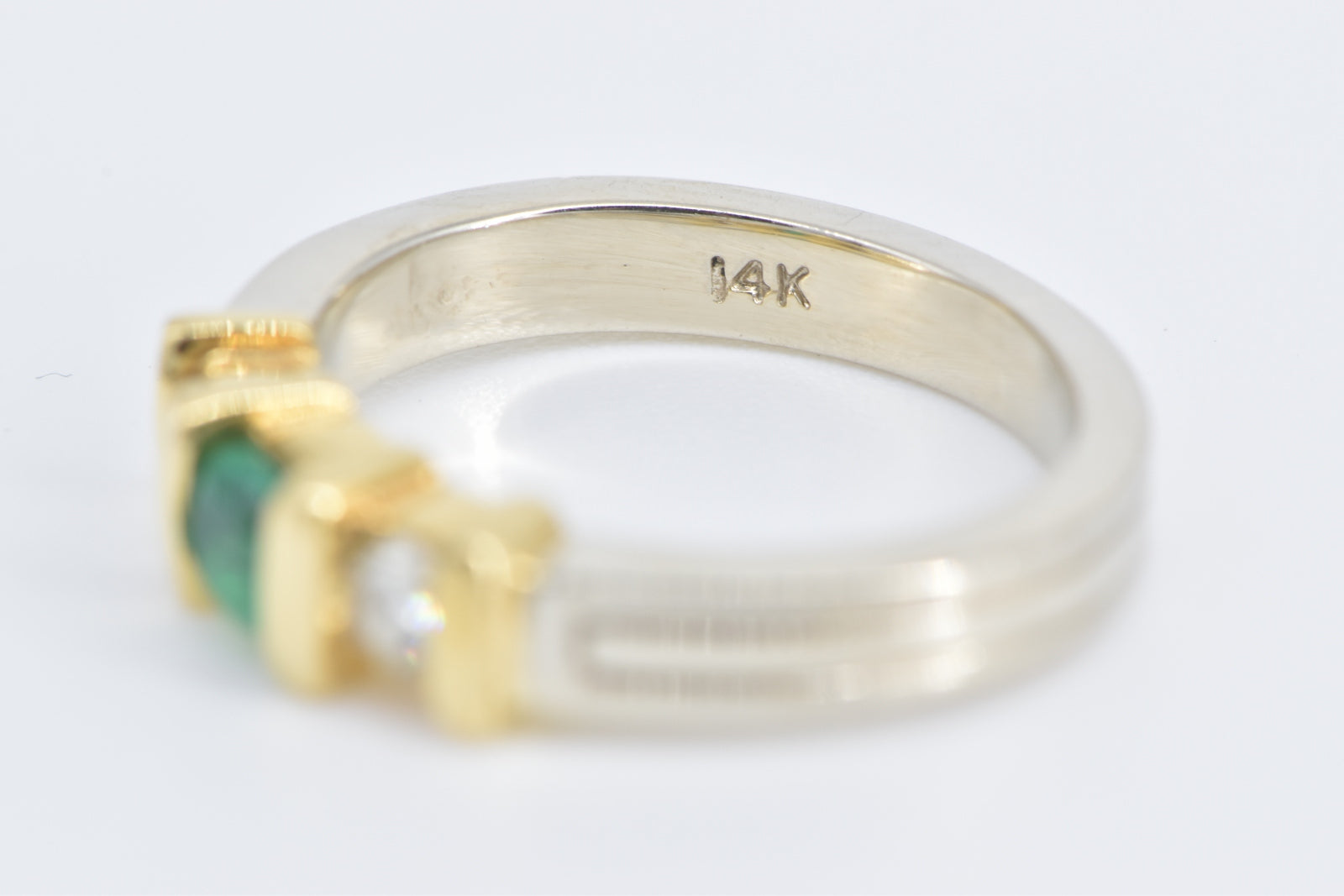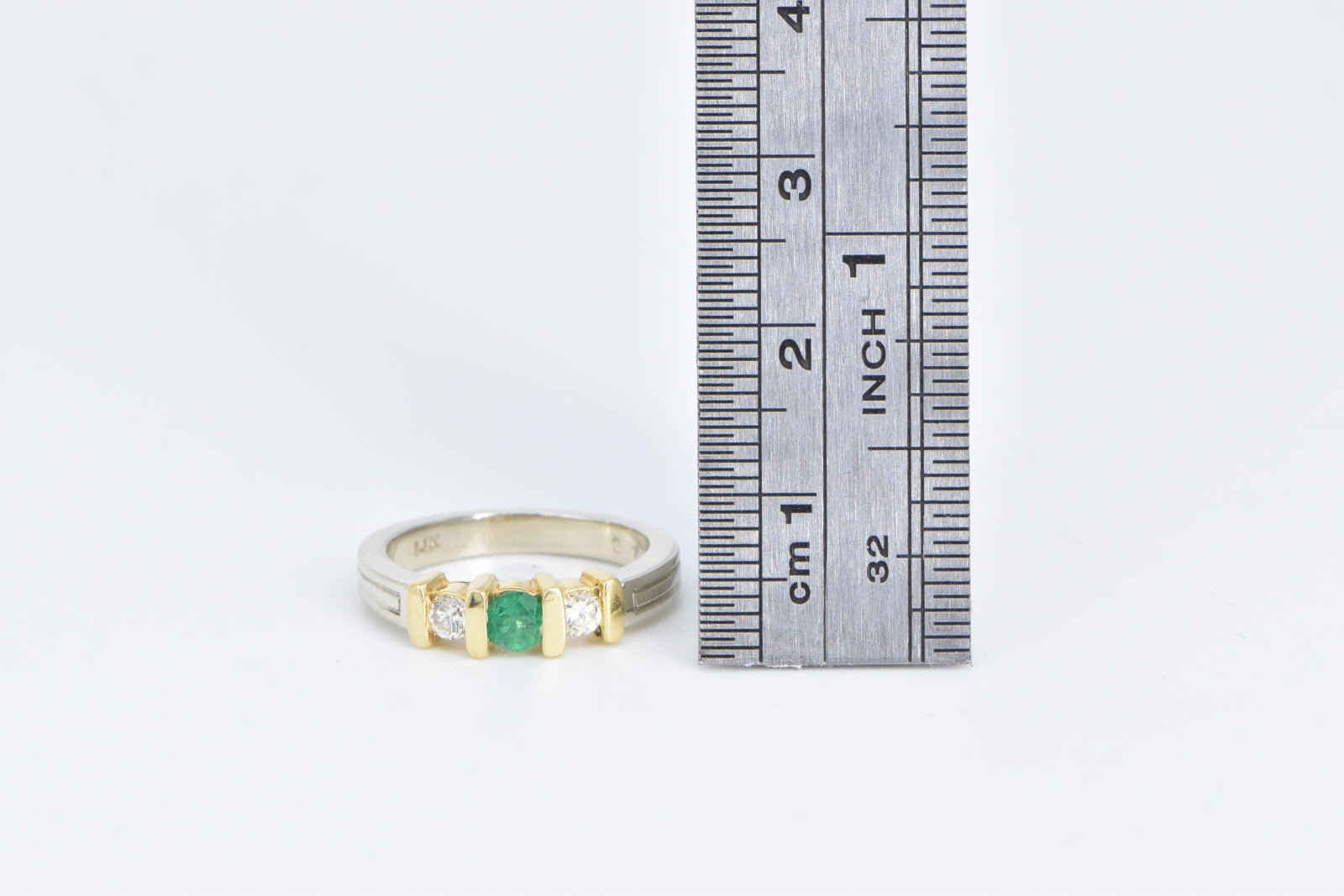 ·Item: 14K Round Emerald Diamond Accent Vintage Ring Size 3 White Gold