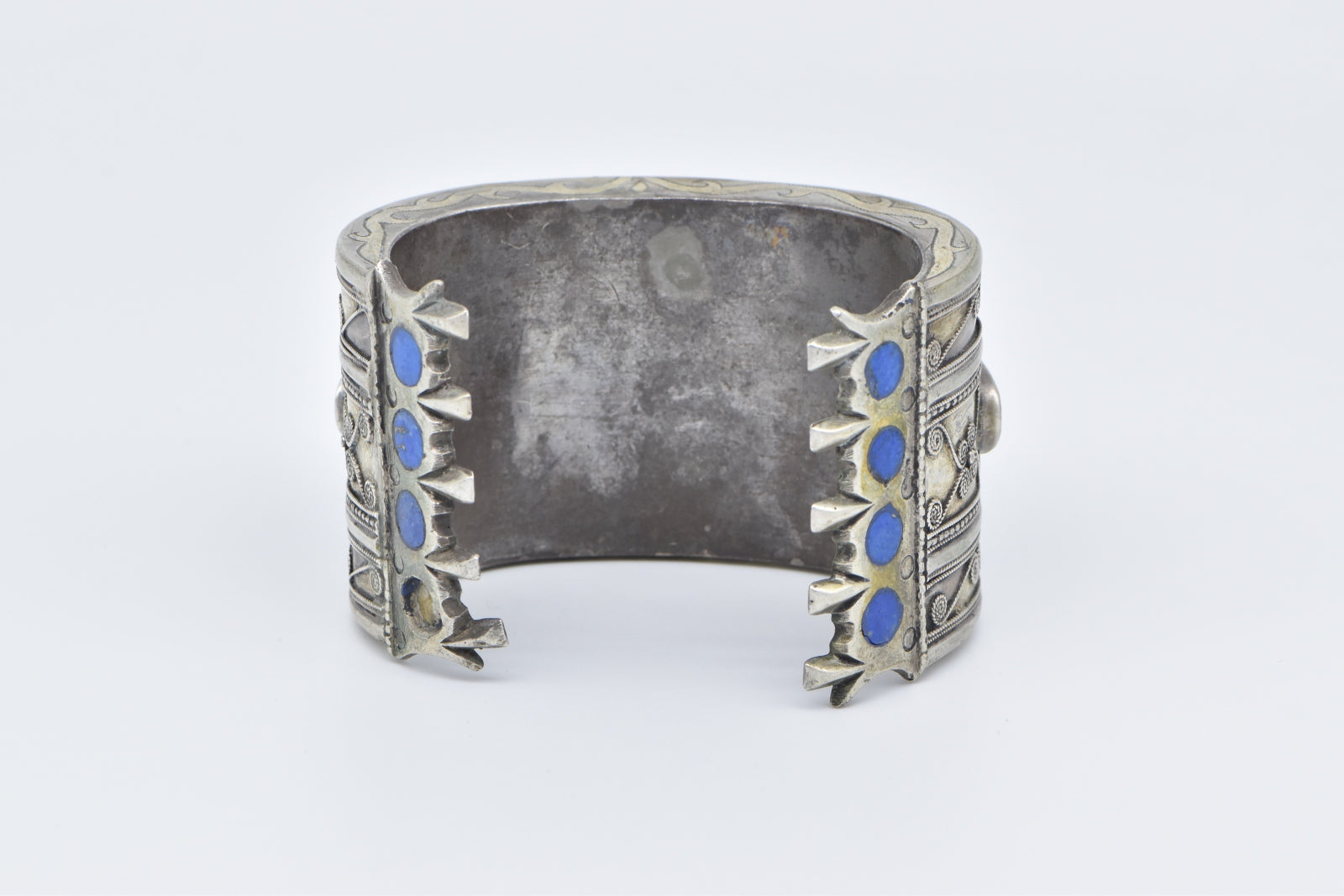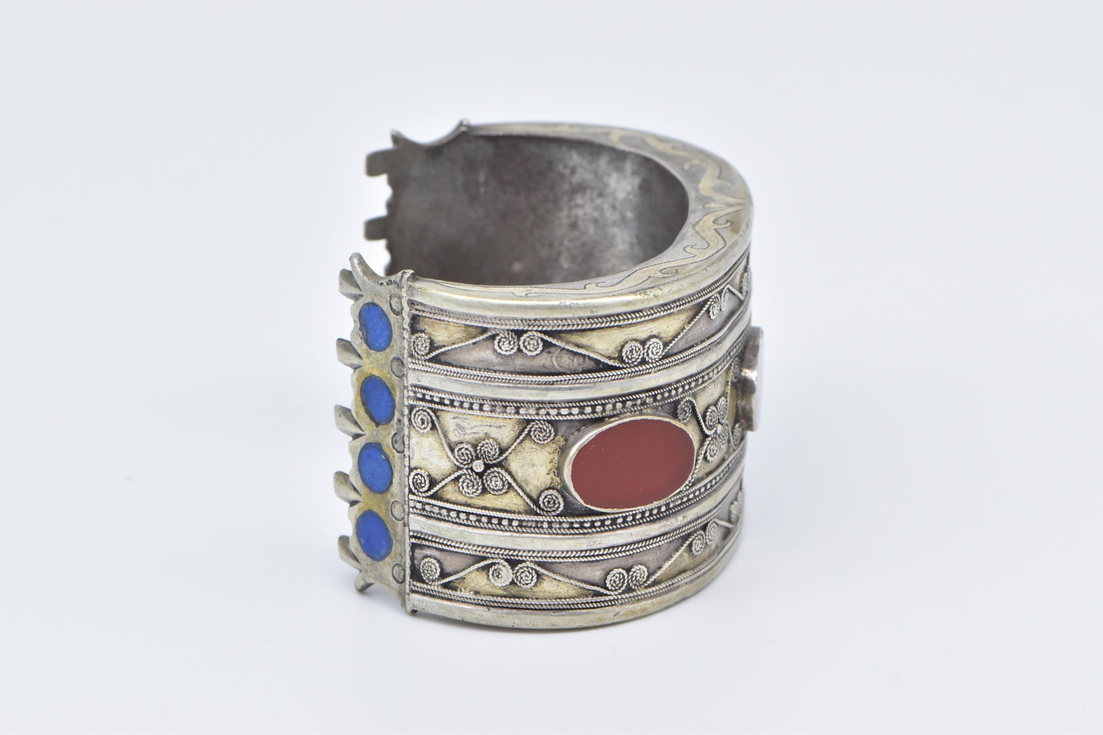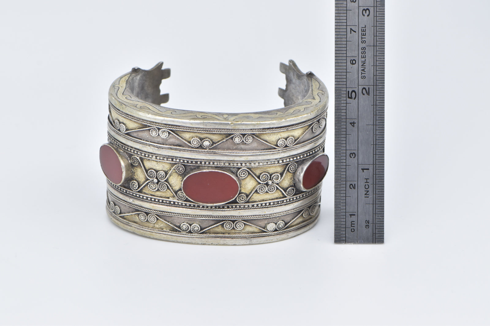 ·Item: Coin Silver Ornate Carnelian Inlay Scroll Pattern Cuff Bracelet 6.5"
