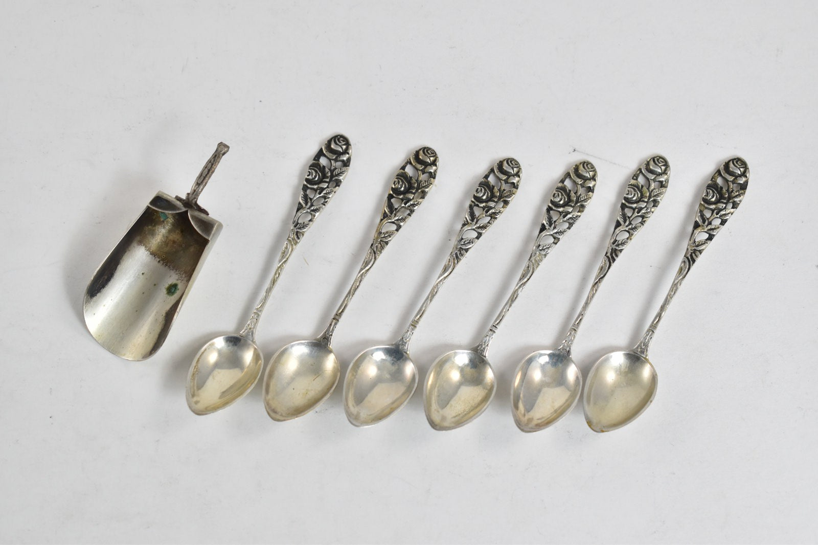 ·Item: Sterling Silver Antique German Rose Demitasse Spoon Salt Scoop (7 pcs)