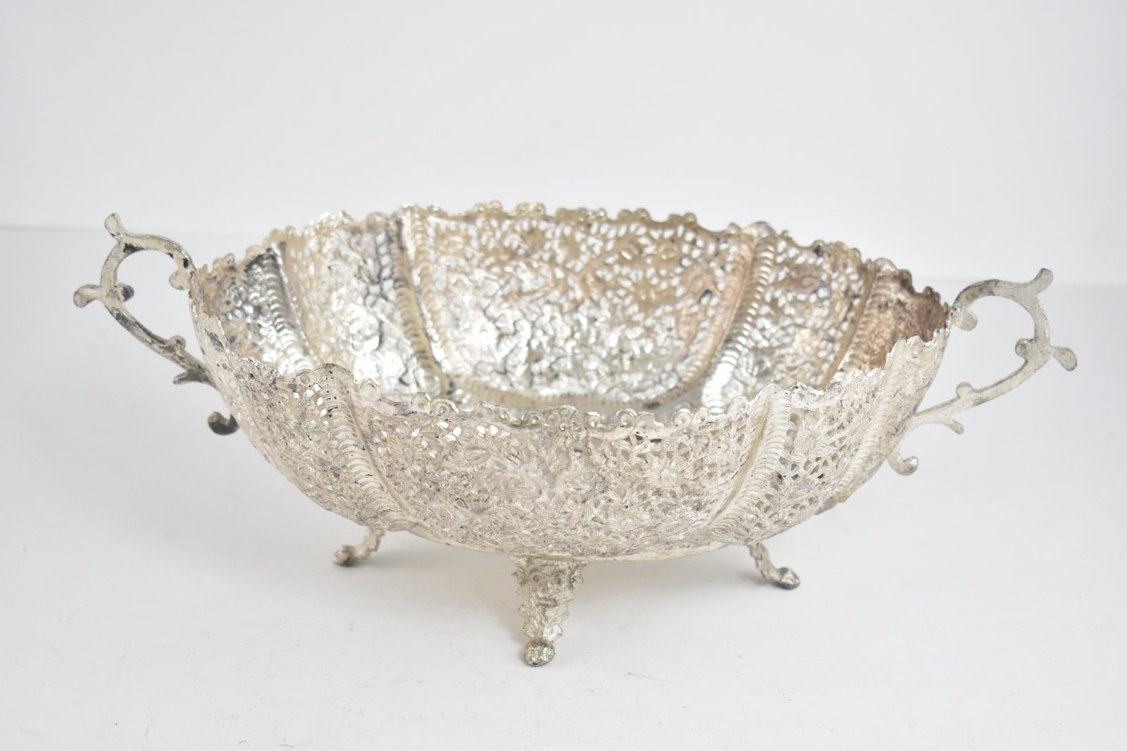 ·Item: Sterling Silver Elaborate Antique Persian Floral Sparrow Bowl