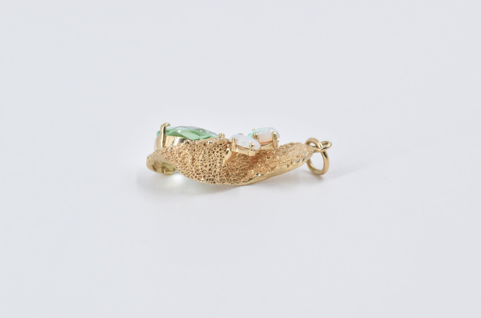 ·Item: 14K Apatite Opal Vintage Freeform Textured Pendant Yellow Gold