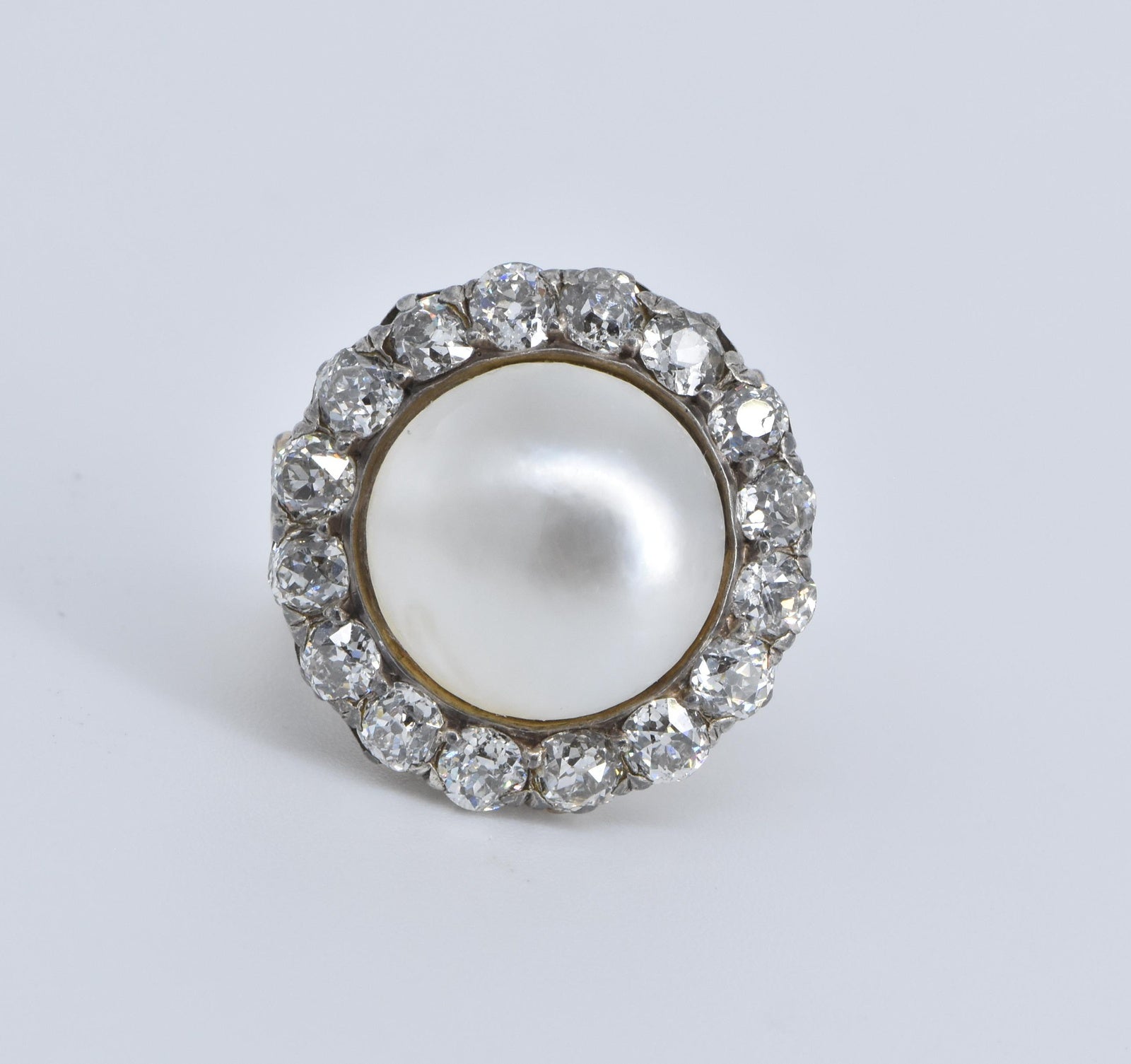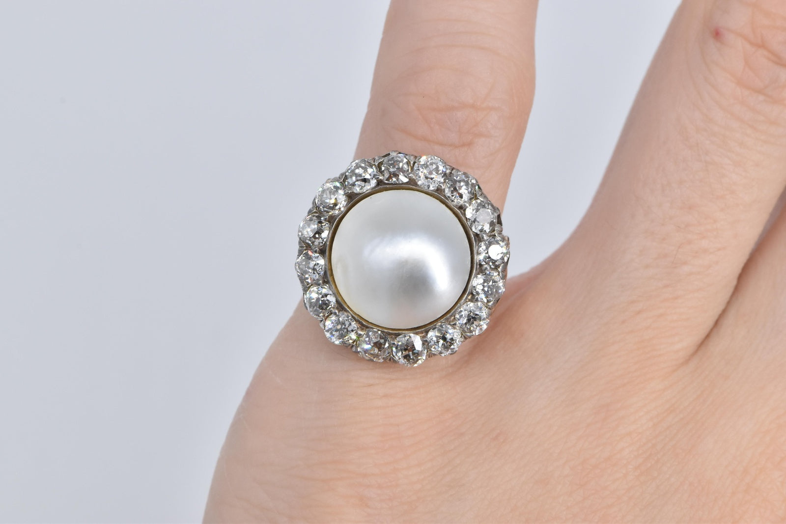 14K 13mm Mabe Pearl 2.40 Ctw OMC Natural Diamond Ring Yellow Gold