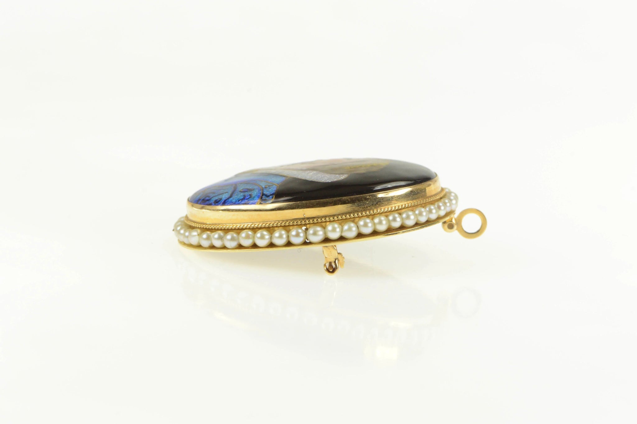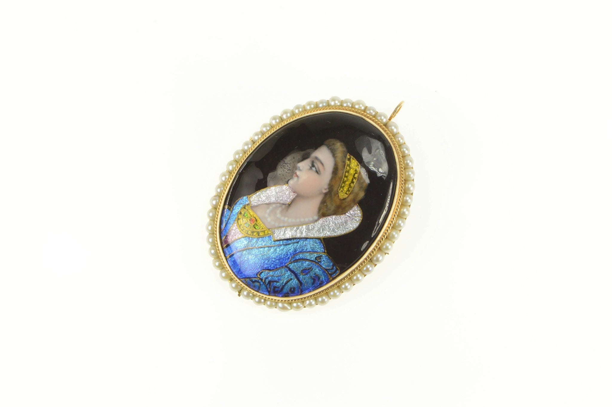 ·Item: 14K R Blancher Limoges Ornate Pearl Oval Pendant/Pin Yellow Gold