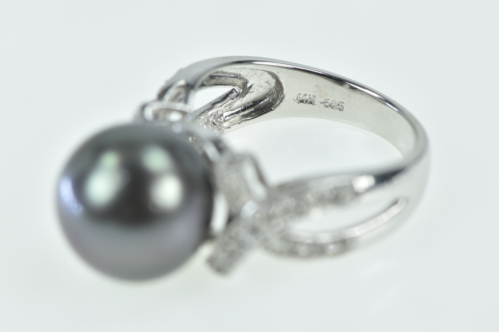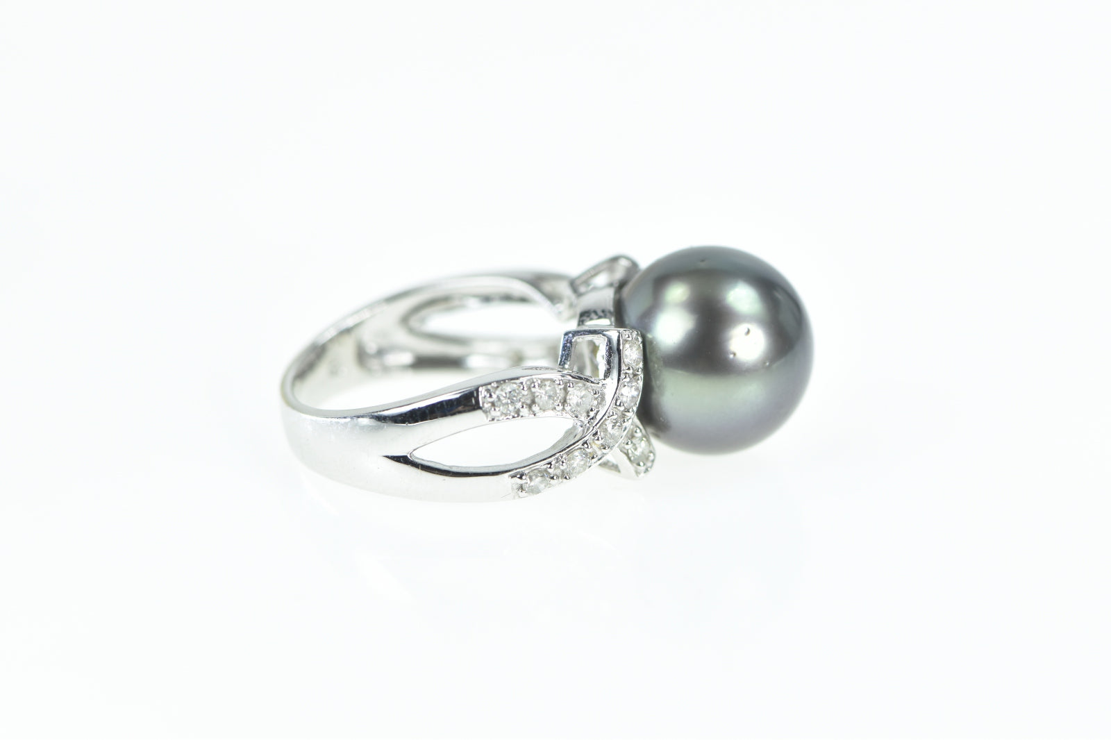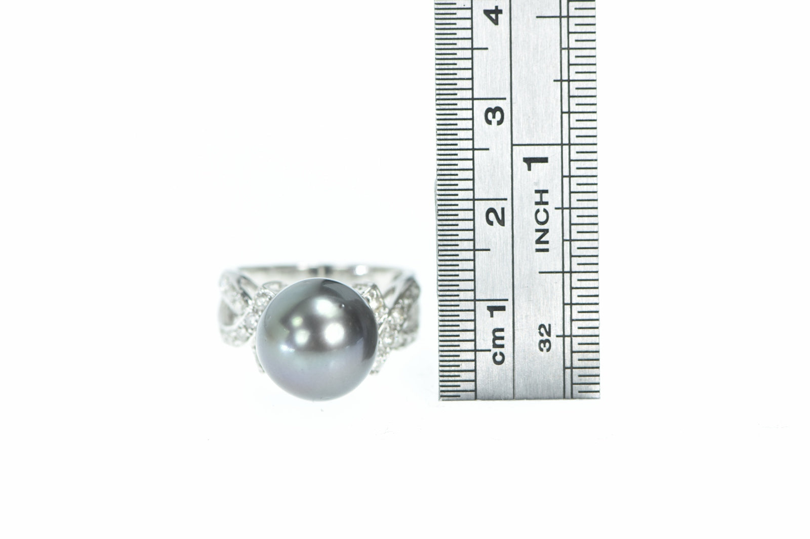 ·Item: 14K Tahitian Pearl Diamond Statement Ring Size 6.75 White Gold