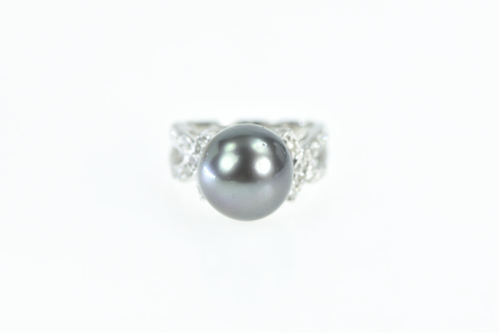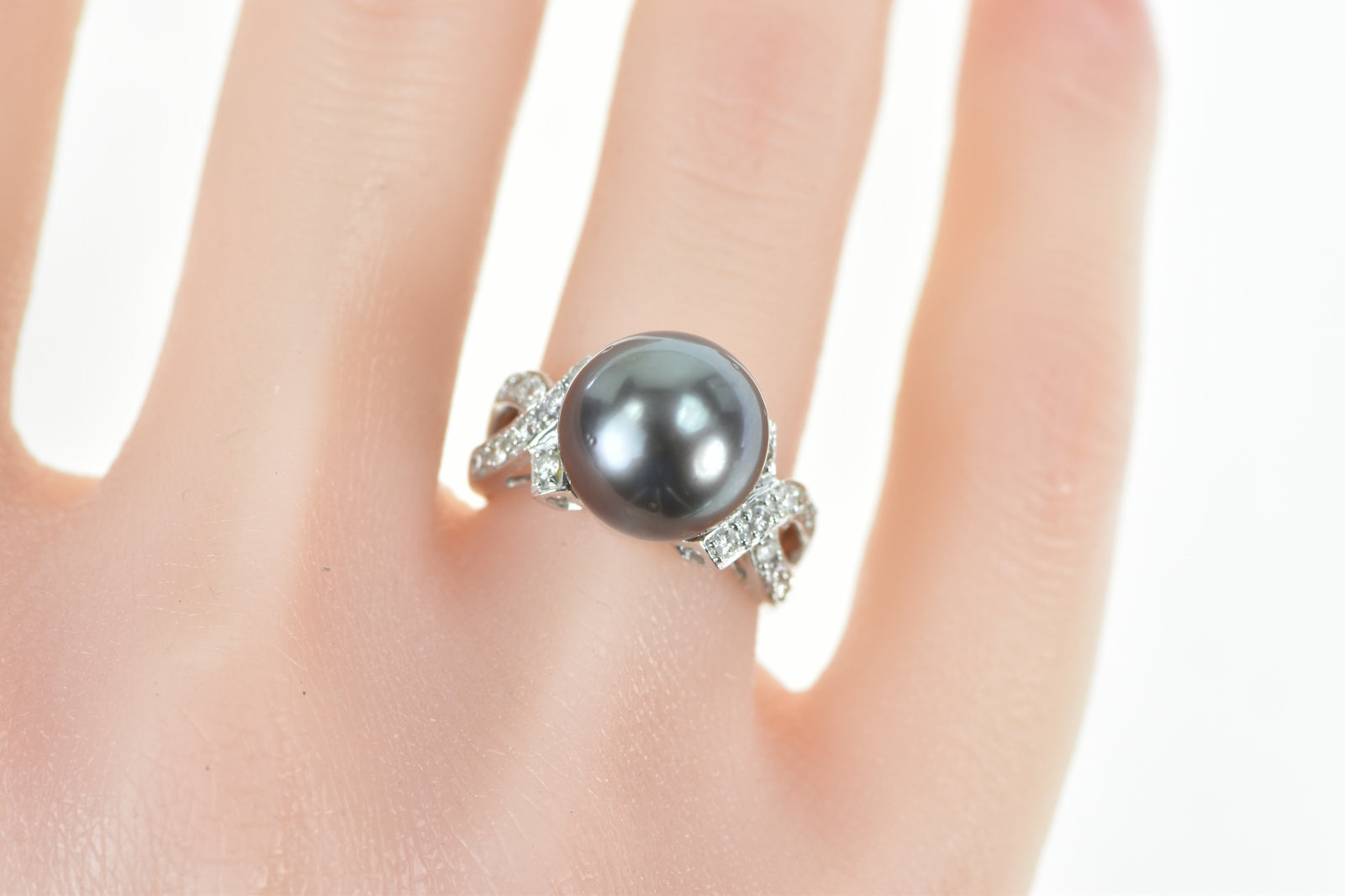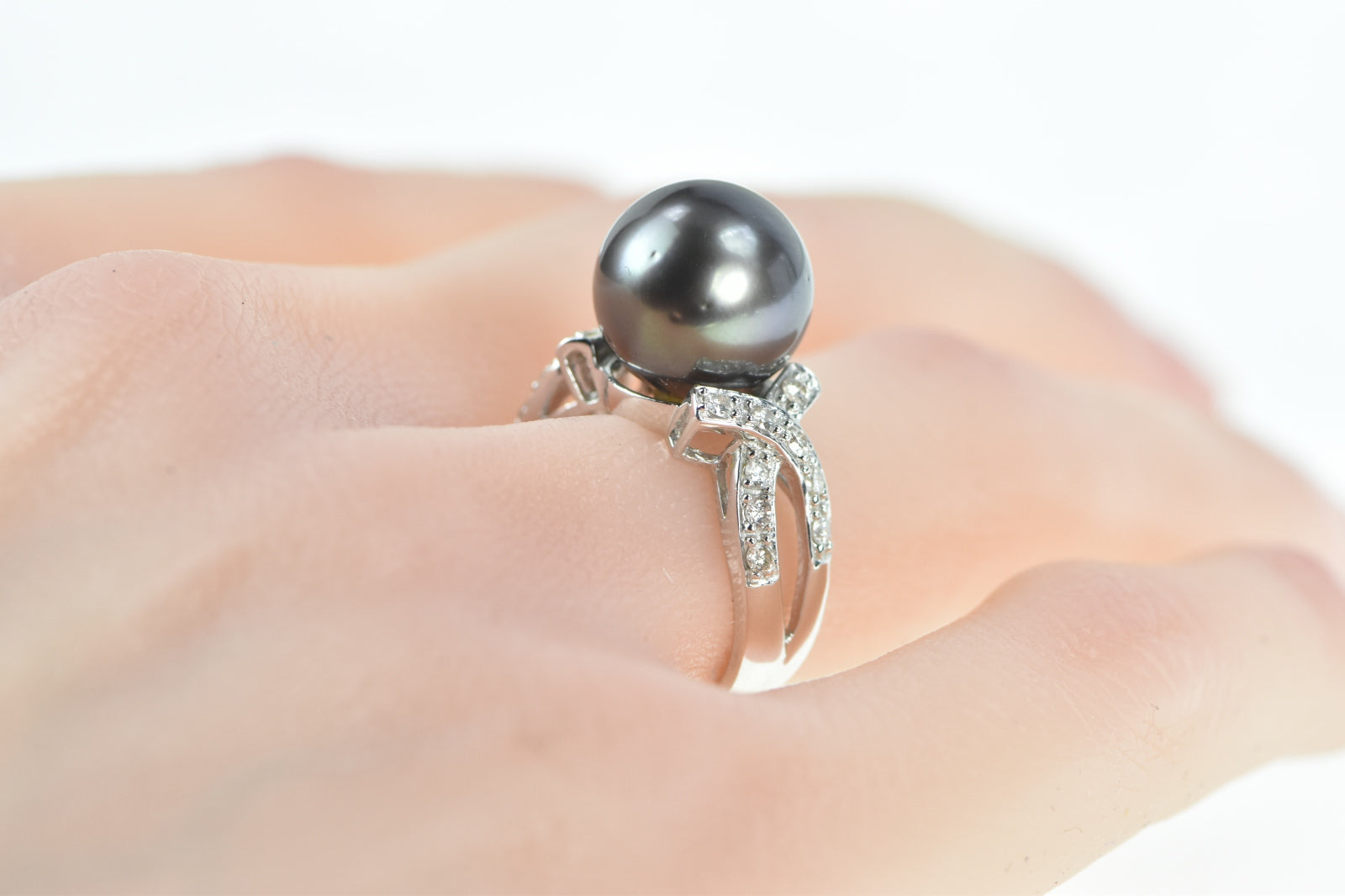 ·Item: 14K Tahitian Pearl Diamond Statement Ring Size 6.75 White Gold