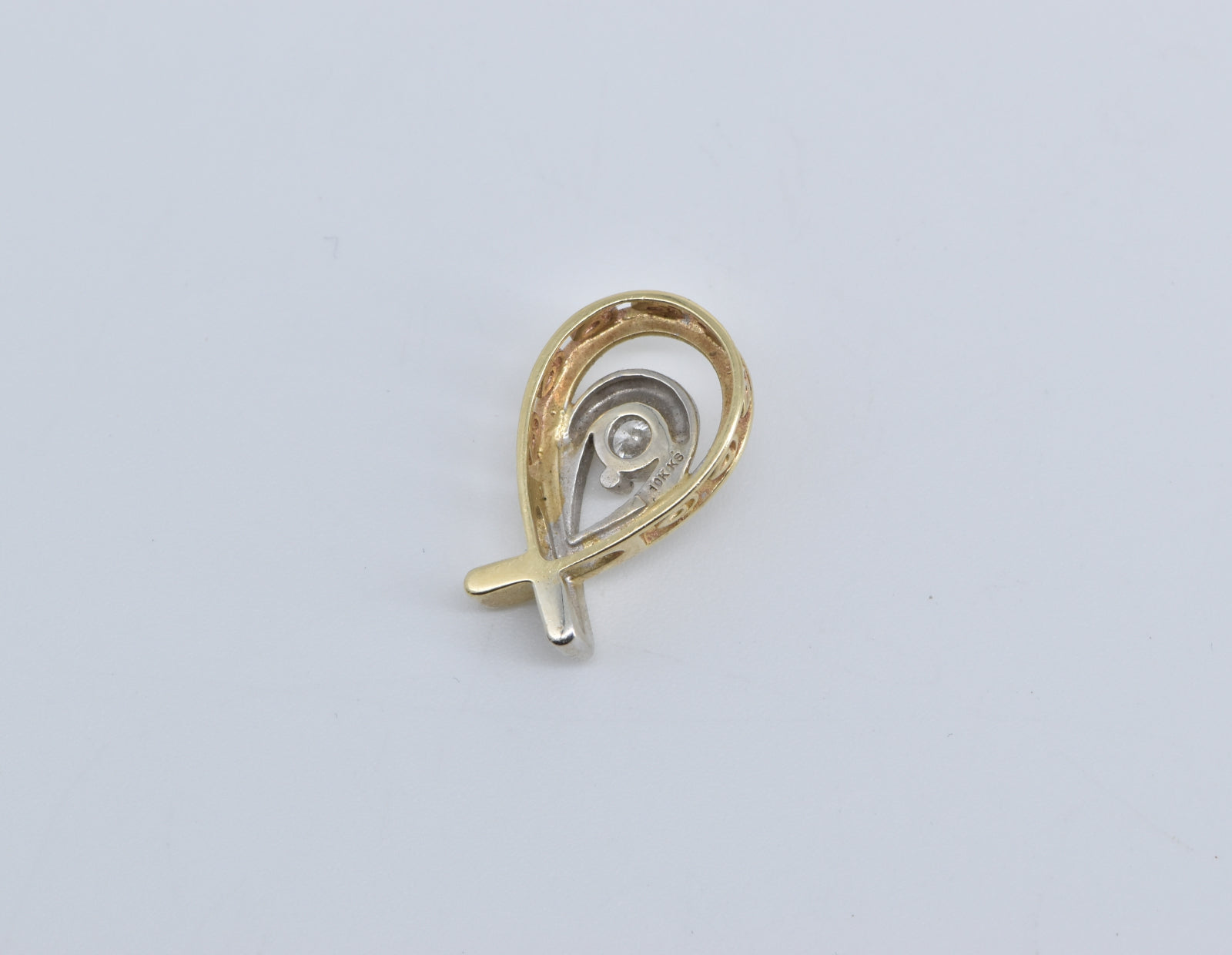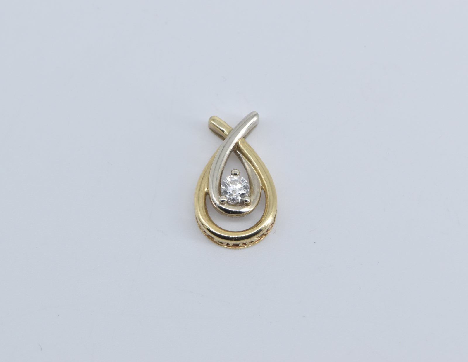 ·Item: 10K 0.20 Ct Diamond Two Tone Loop Love Symbol Pendant Yellow Gold