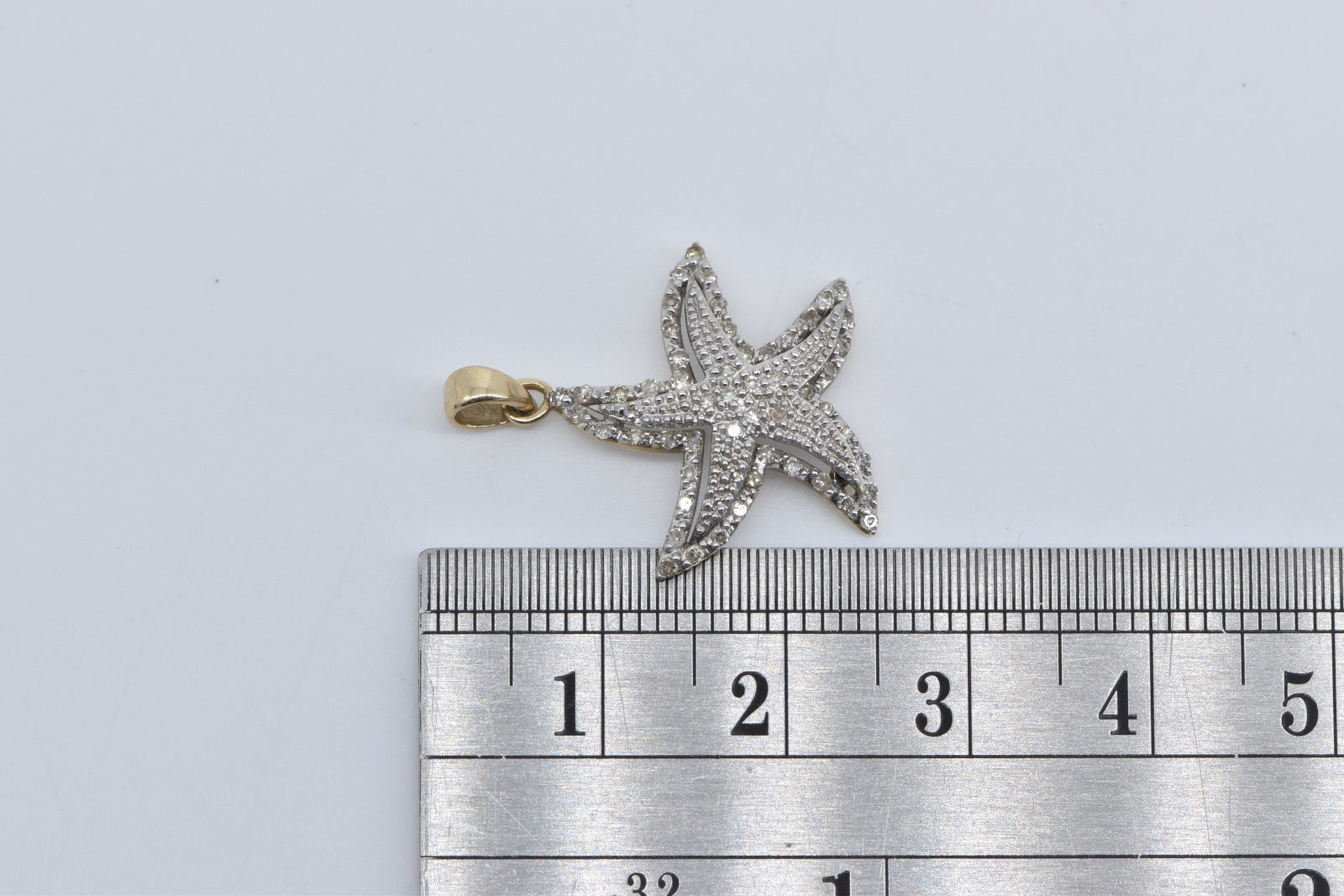 ·Item: 10K Pave Diamond Sea Star Fish Beach Pendant White Gold