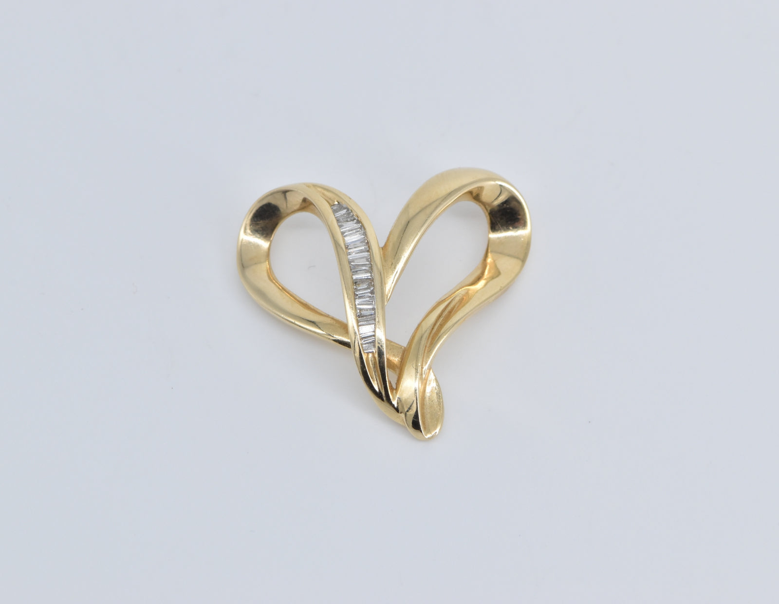 ·Item: 14K 0.50 Ctw Baguette Natural Diamond Heart Slide Pendant Yellow Gold