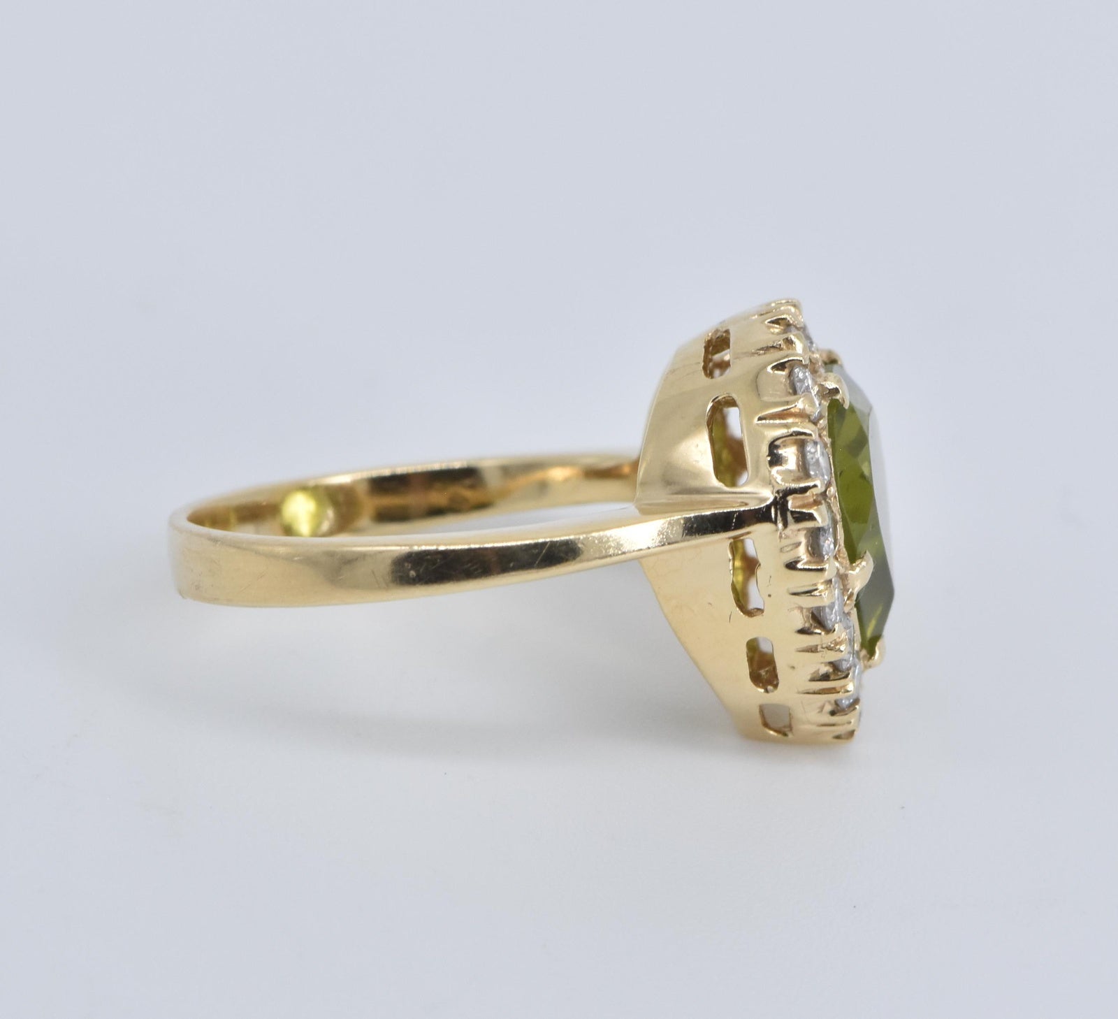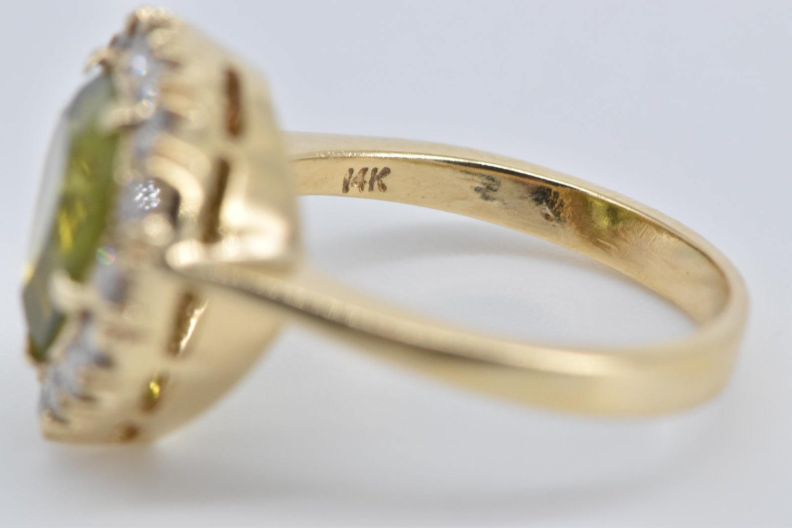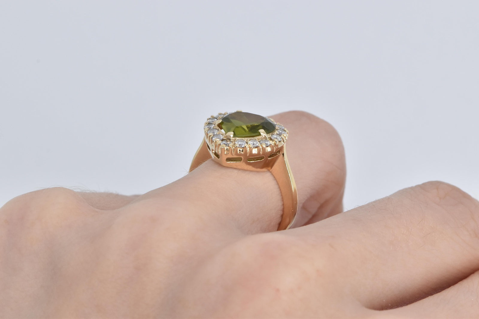 ·Item: 14K 2.50 Ctw Natural Pear Peridot Diamond Halo Ring Size 6 Yellow Gold