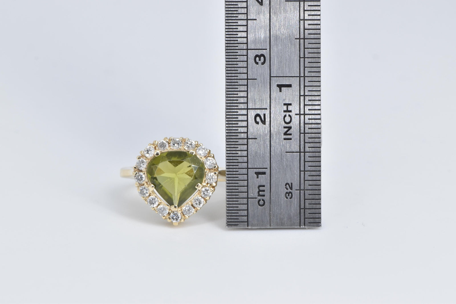 14K 2.50 Ctw Natural Pear Peridot Diamond Halo Ring Yellow Gold