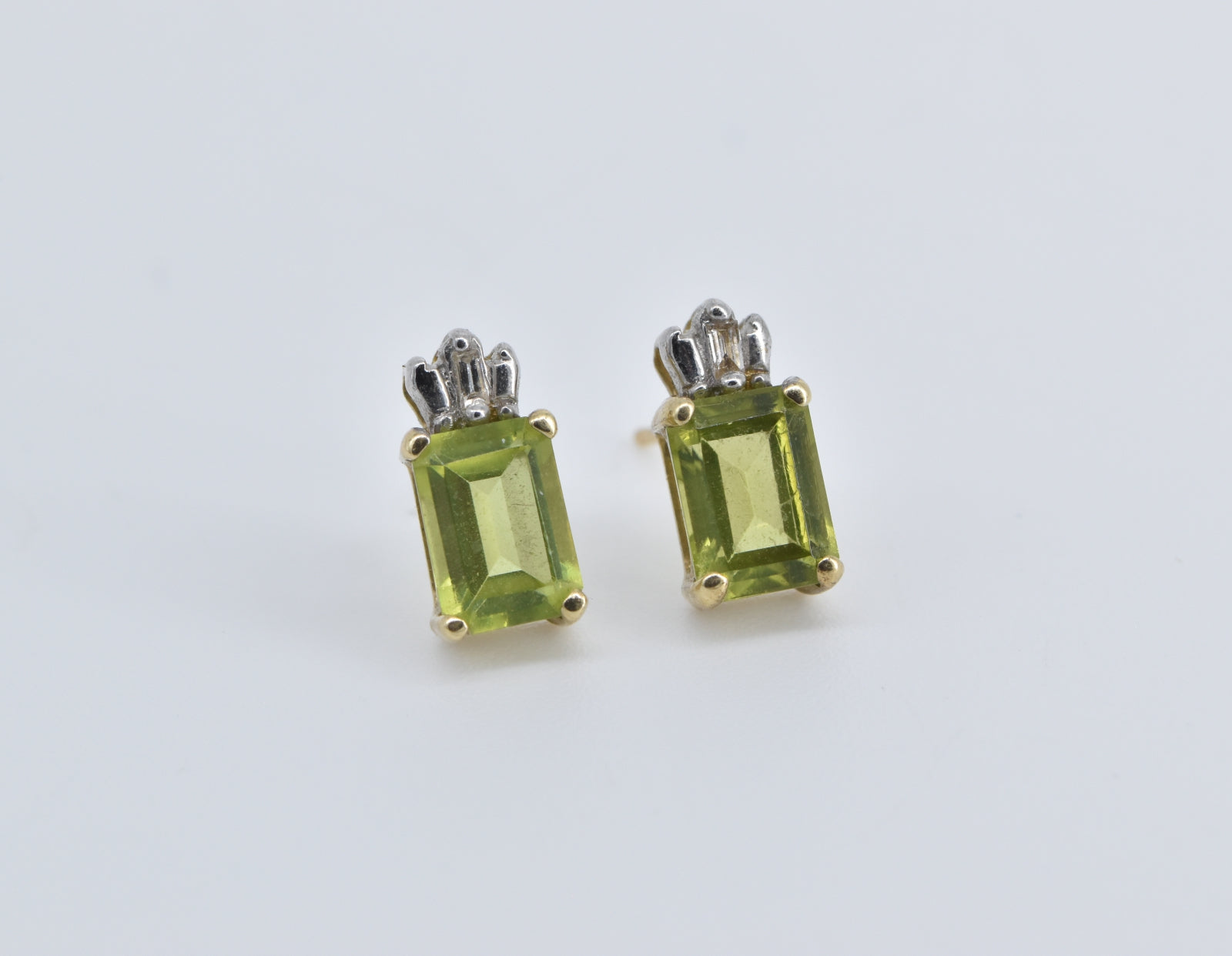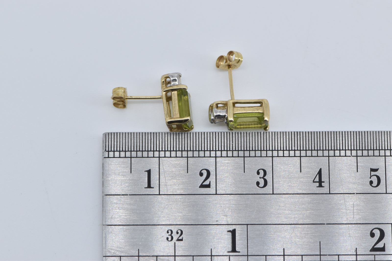 ·Item: 14K Emerald Cut Peridot Baguette Diamond Stud Earrings Yellow Gold