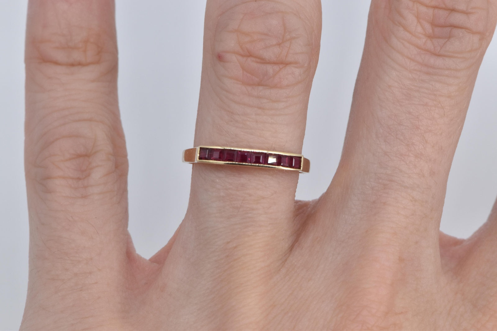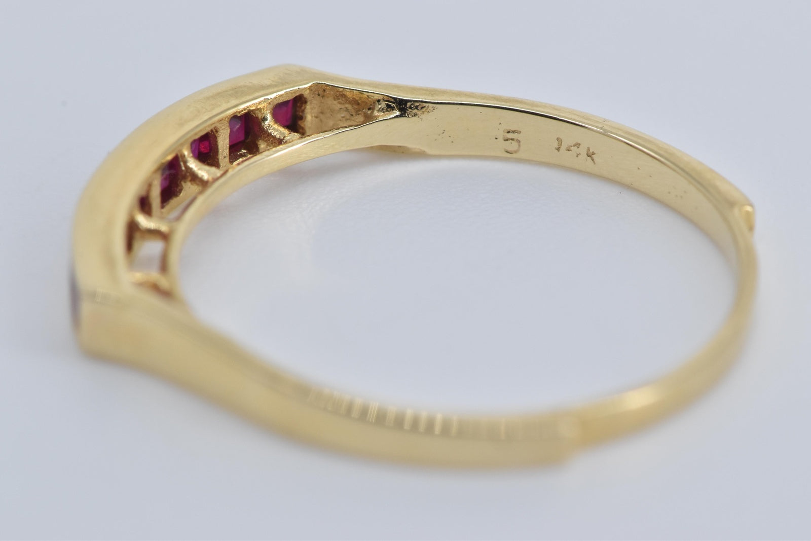 ·Item: 14K 0.50 Ctw Princess Natural Ruby Wedding Band Ring Size 7 Yellow Gold